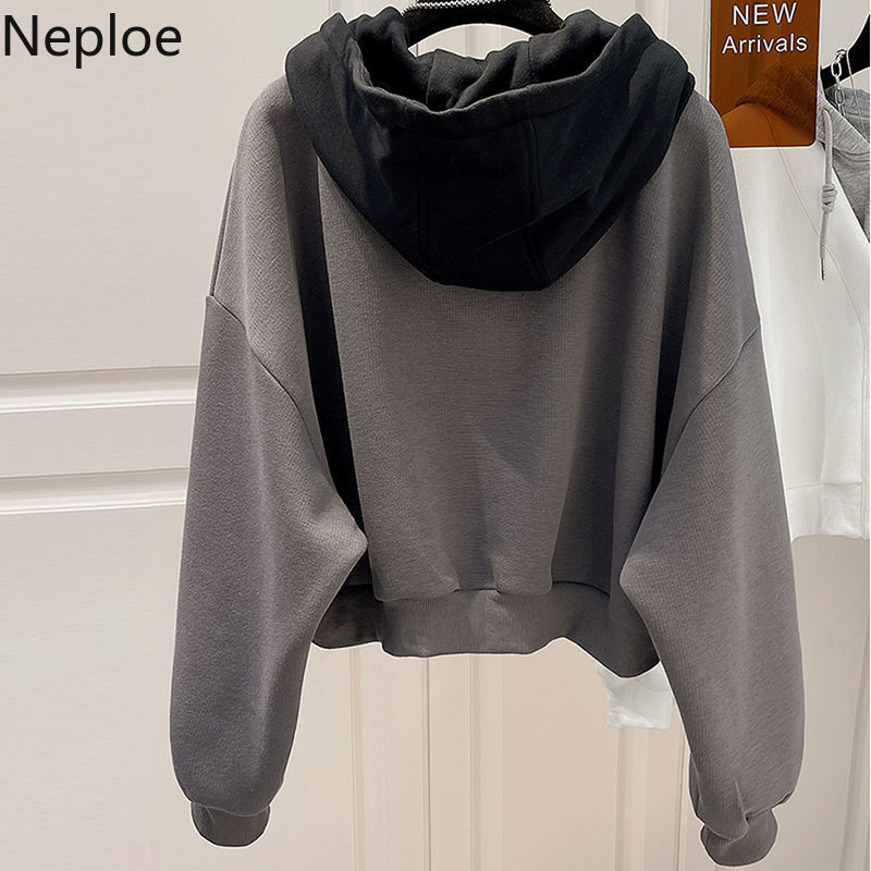 Wongn 2023 Fake Two Piece Hoodies Women Korean Patchwork Hooded Short Outwear Tops Mujer Thicked Loose Casual Y2k Sweatshirt