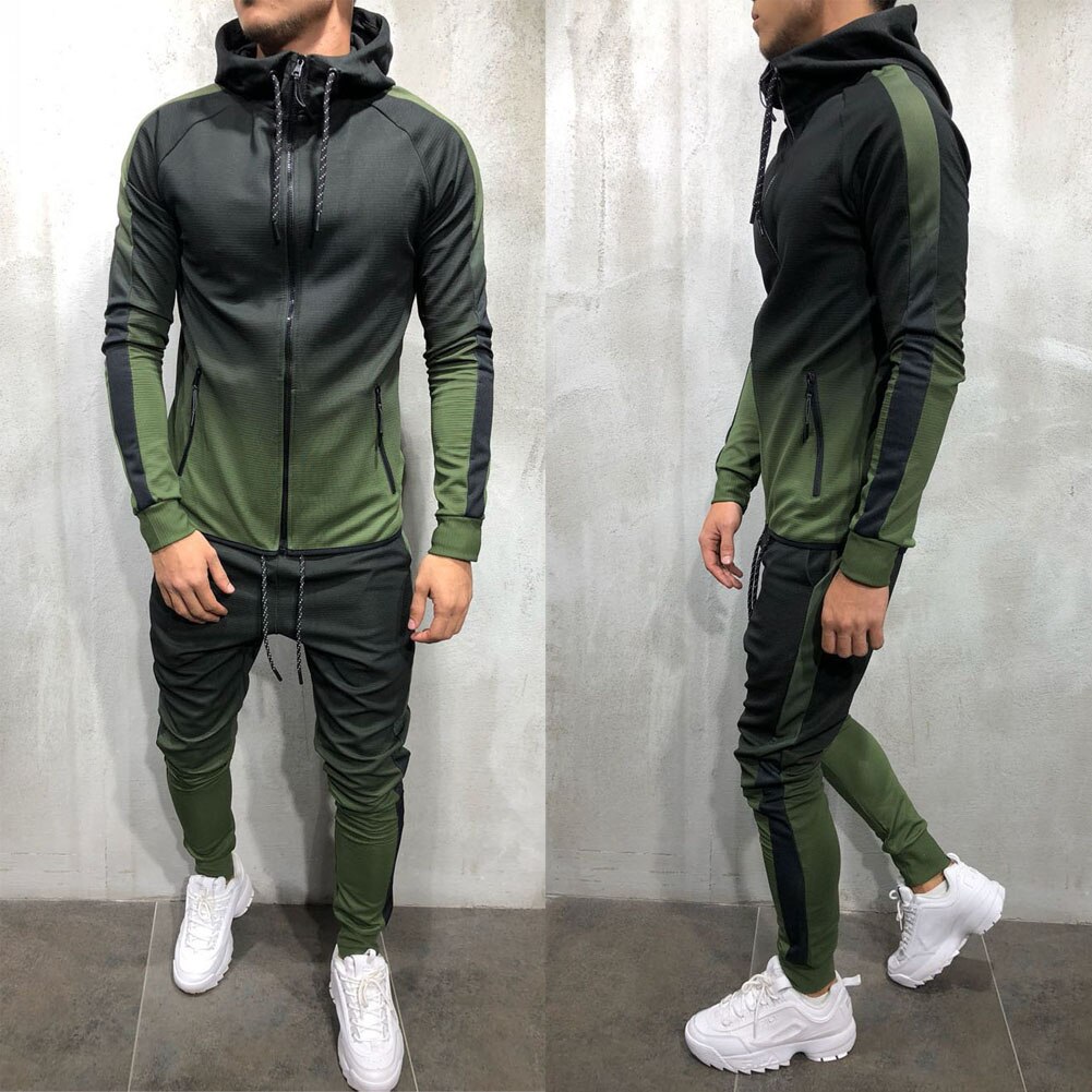 Wongn Men Fall 2pcs Turtleneck Gradual Change Color Tracksuit Set Hoodie Top High Waist Bottoms Joggers Gym Plain Zip Pockets Slim Fit