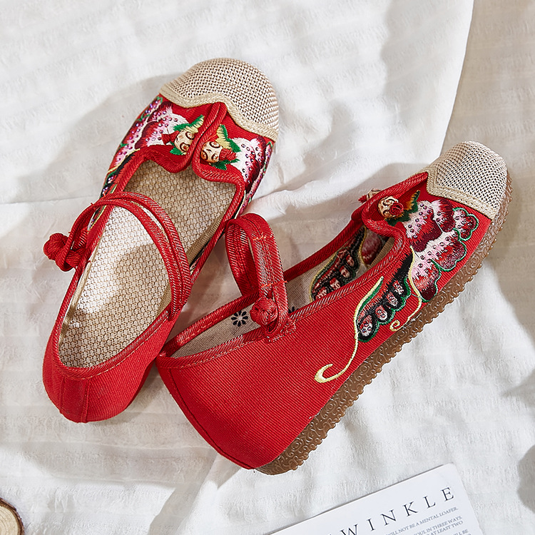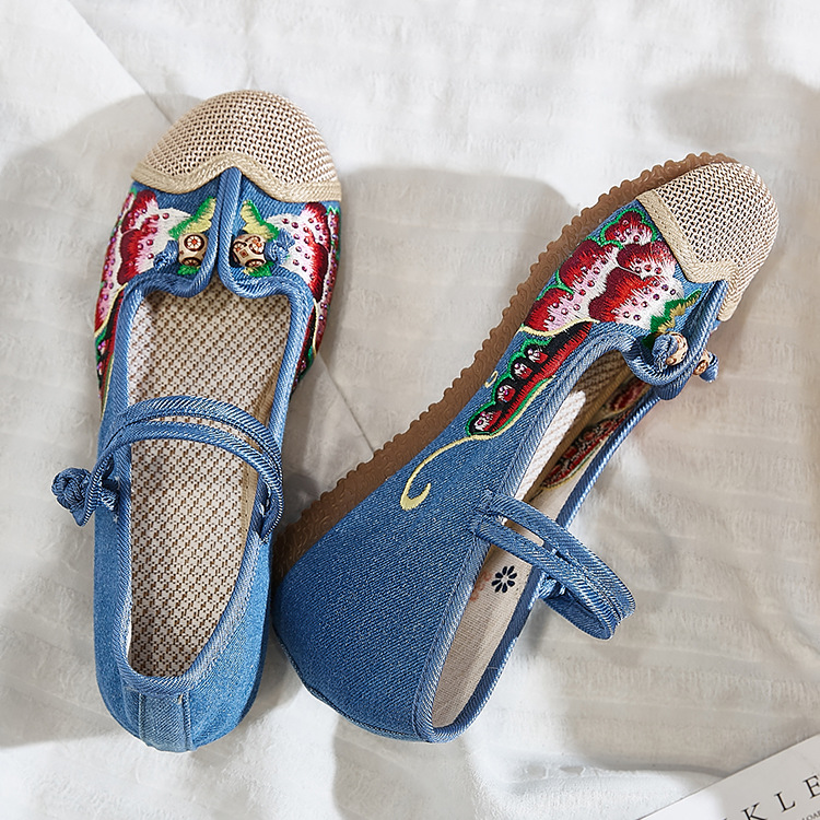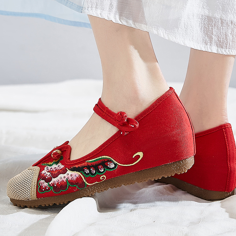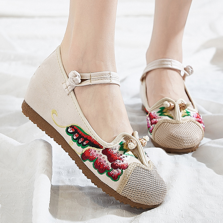 Wongn Wongn Not Include Shoe Box Single Shoes Inside The High Height Female Slope Heel High Heels Canvas Embroidered Cloth Shoes Women's Shoes Ethnic Flowers Build Buckle Shoes