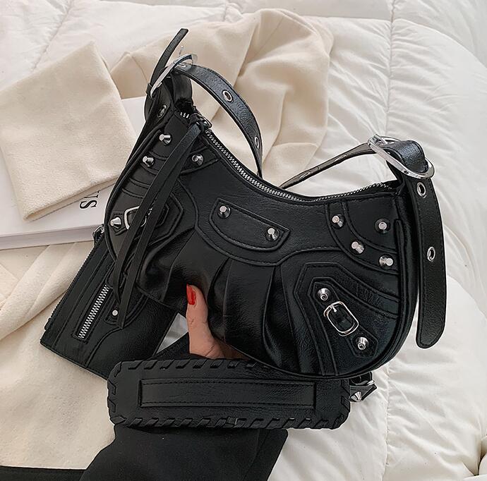 2 bag Half Moon Armpit Bag 2021 Winter New High-quality PU Leather Women's Designer Handbag Vintage Rivet Shoulder Messenger Bag