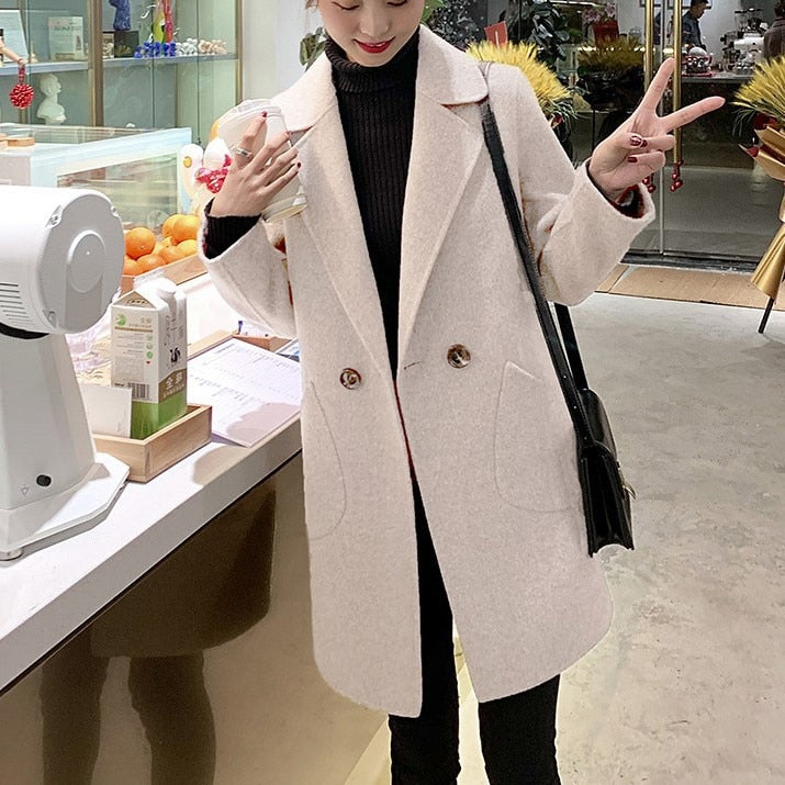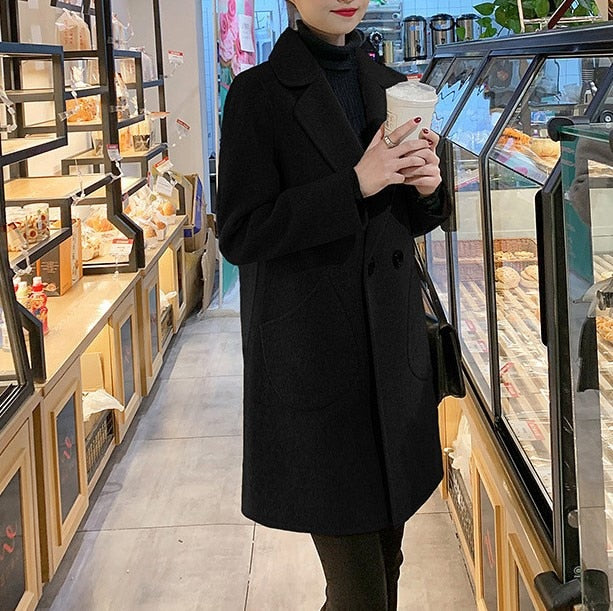 2021 New Autumn And Winter Black Small Woolen Coat Women's Middle Long Korean Version Autumn And Winter Anti Season Woolen Coats