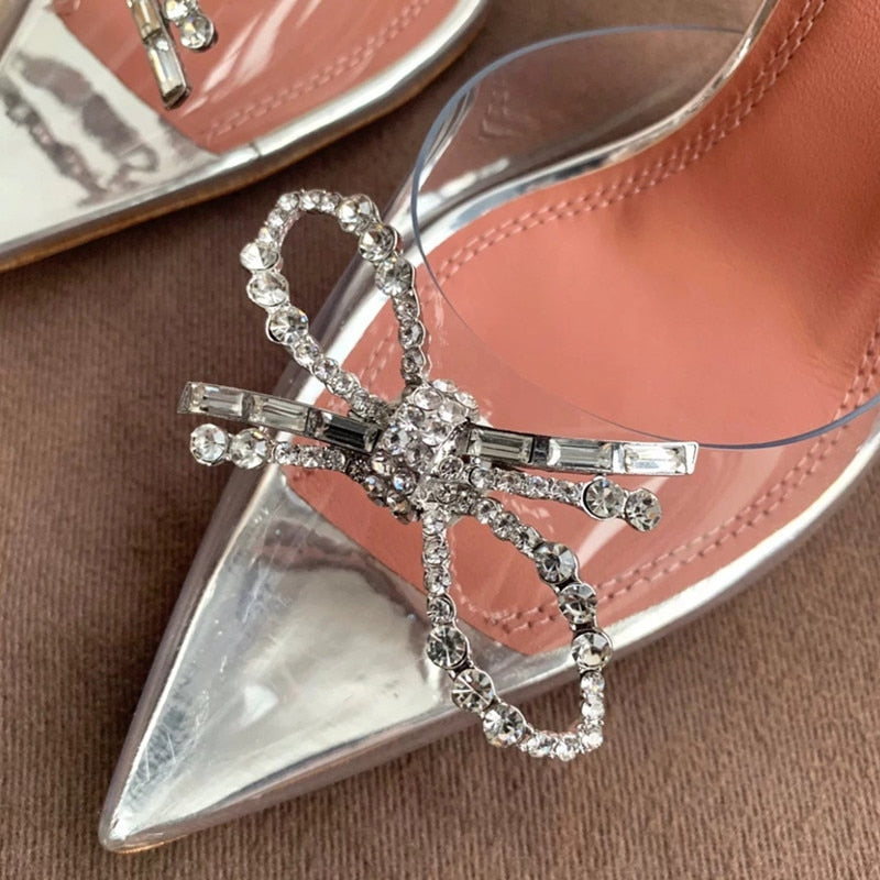 2021 Summer New Bow Sandals Women's Crystal Transparent Rhinestone High Heels Stiletto Heel