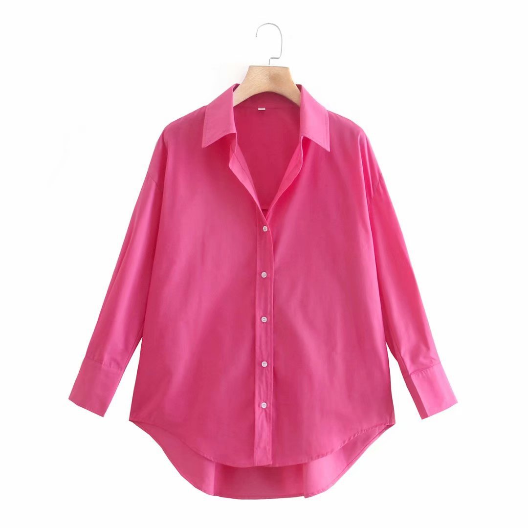 2022 New Women Simply Candy Color Single Breasted Poplin Shirts Office Lady Long Sleeve Blouse Roupas Chic Chemise Tops 18513