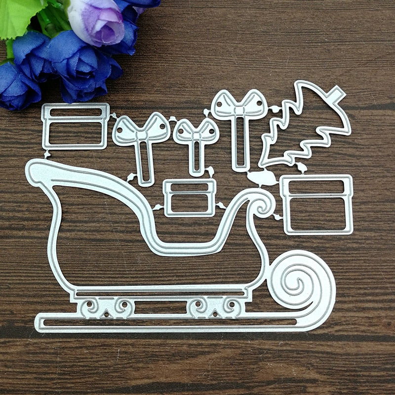 8Pcs Christmas sleigh Metal Cutting Dies For DIY Scrapbooking Album Embossing Paper Cards Decorative Crafts