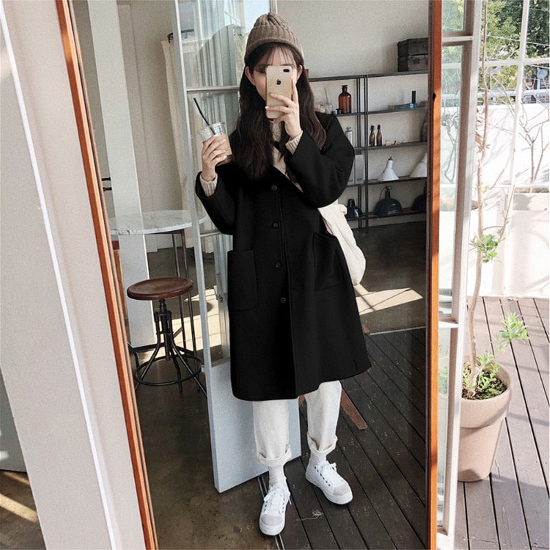 Autumn And Winter 2021 New Korean Loose College Style Black Woollen Coat Medium Long Small Tweed Coat For Women