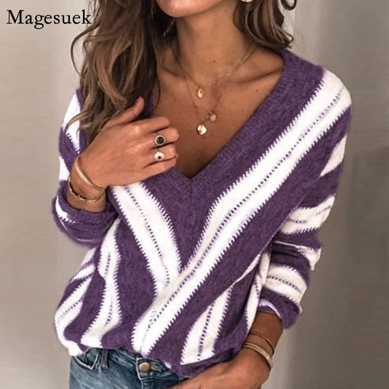 Autumn Winter New Long Sleeve Sweater Women Loose Soft V-Neck Knitted Sweater Woman Streetwear Wool Sweaters Pull Femme 17770