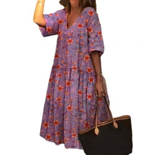 Boho Women V Neck Half Sleeve Floral Print Large Hem Beach Party Midi Dress  Women Dress Spring Summer Dress Sets