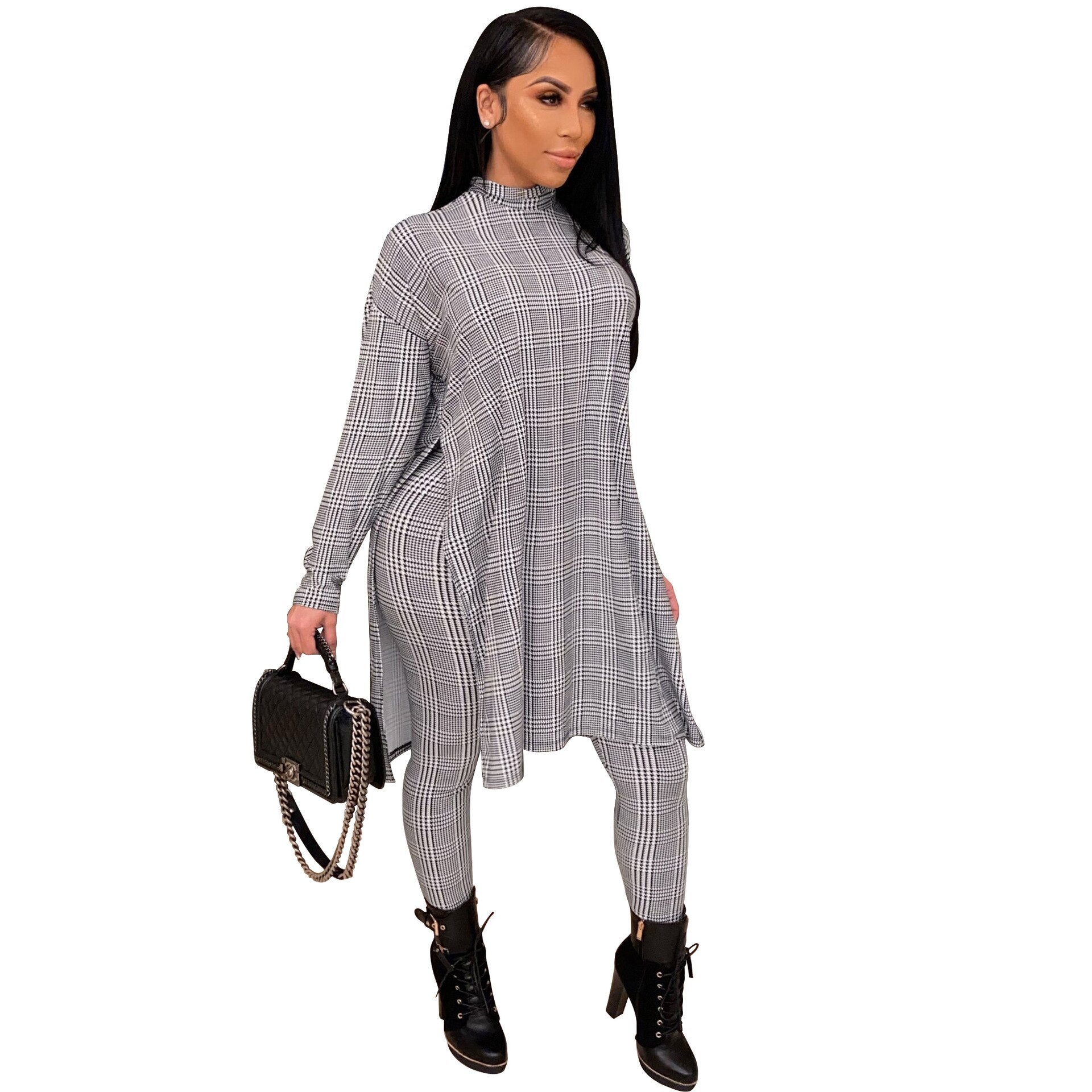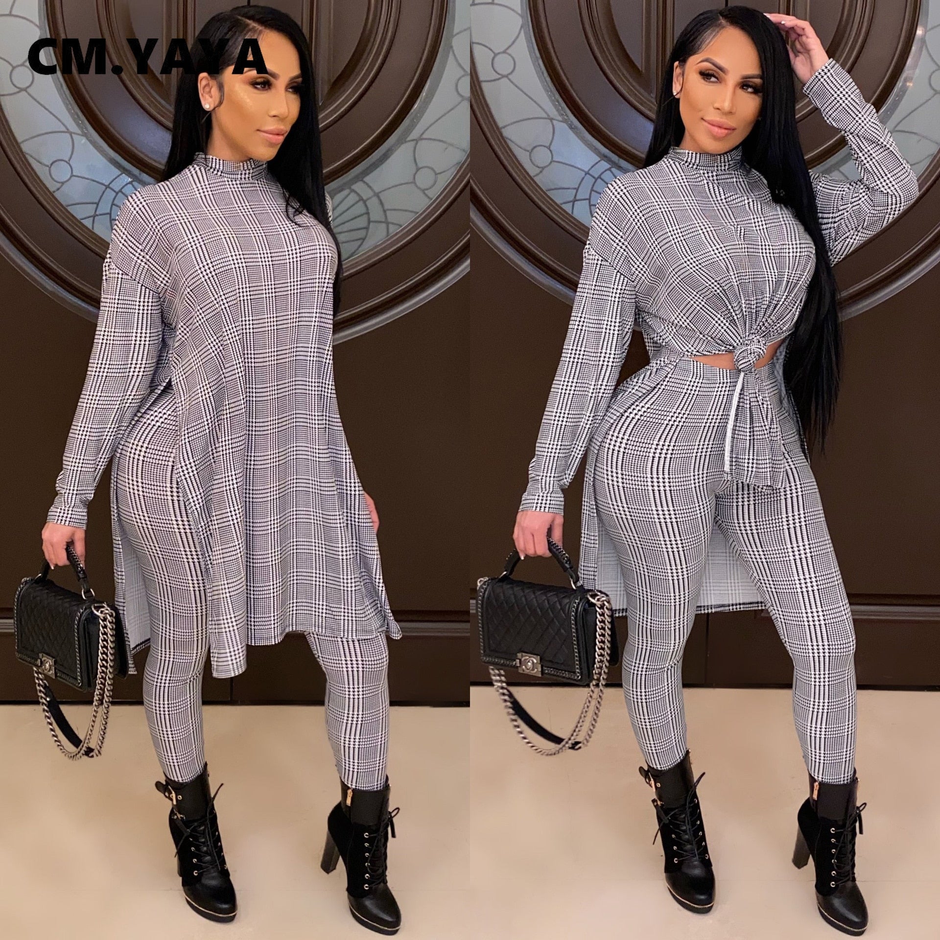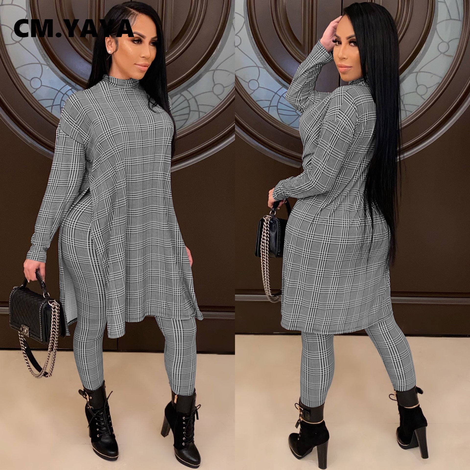 CM.YAYA Active Houndstooth Sweatsuit Women's Set Long Tops Legging Pants Suit Streetwear Tracksuit Two Piece Set Fitness Outfit