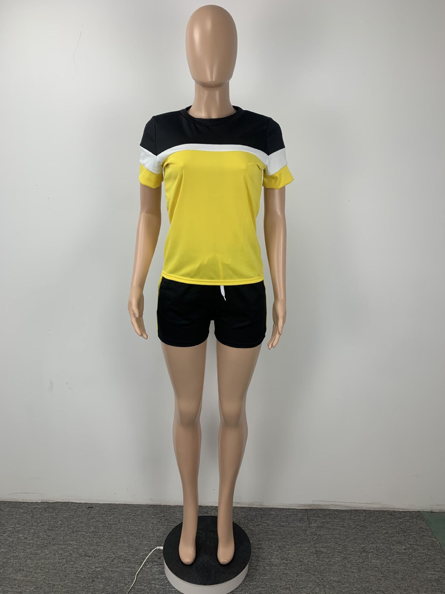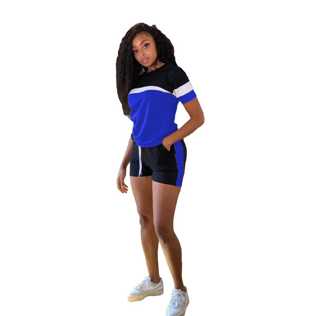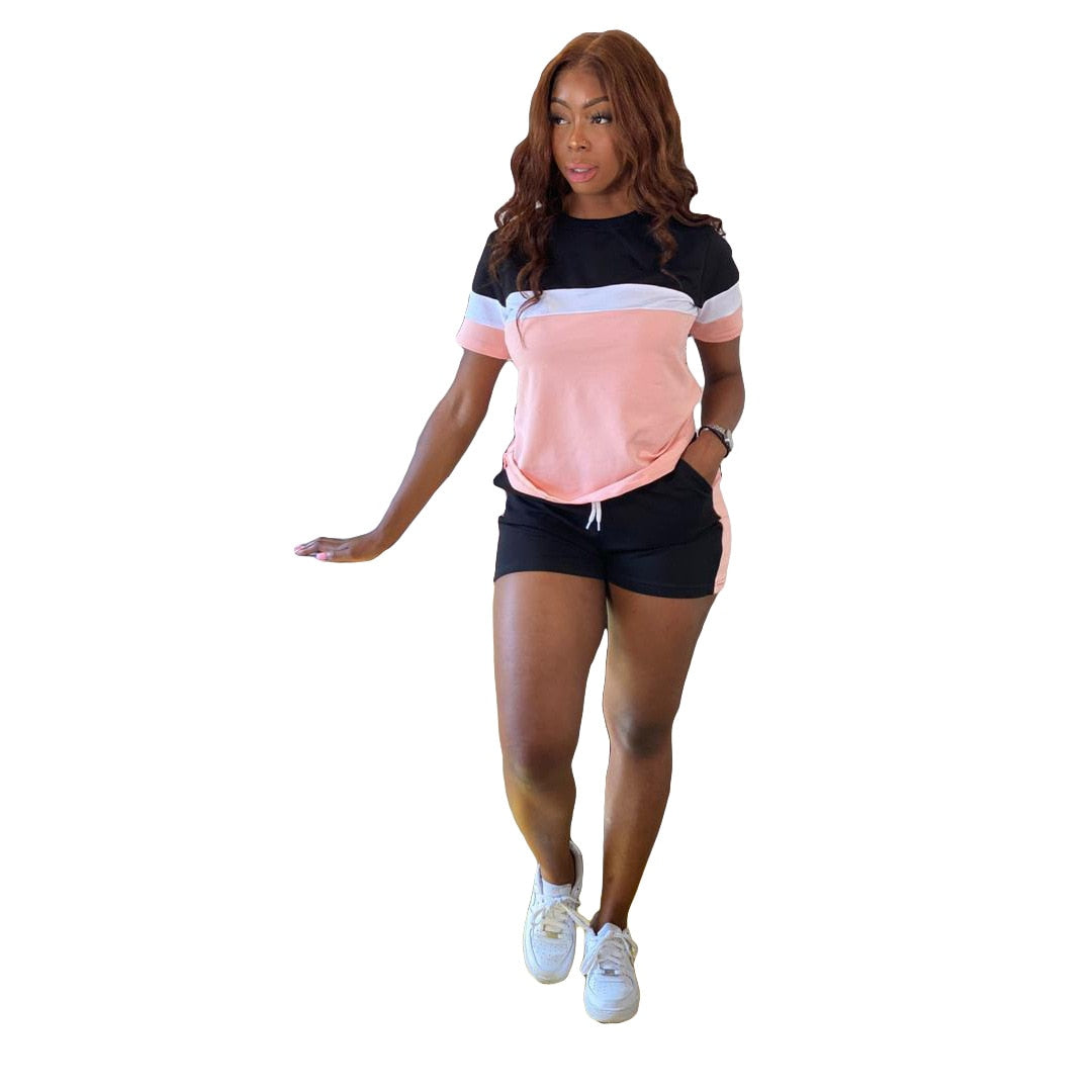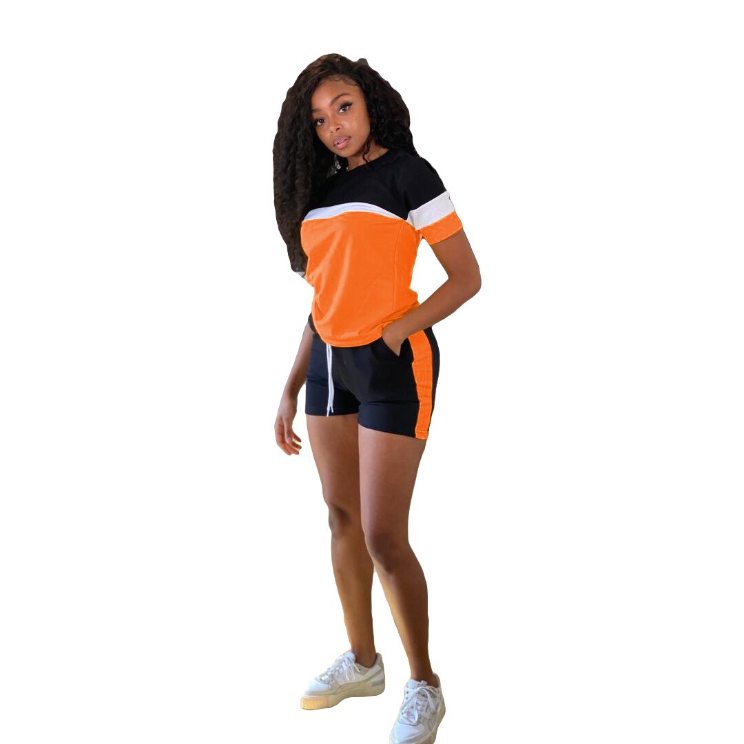 CM.YAYA Active Patchwork Sweatsuit Women's Set Tee Tops and Shorts Matching Set Jogger Tracksuit Two 2 Piece Set Fitness Outfit
