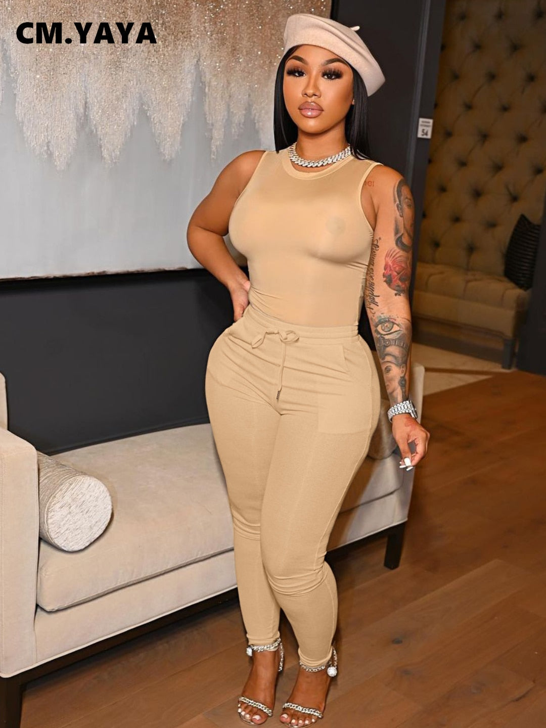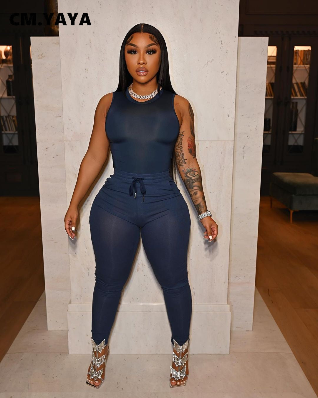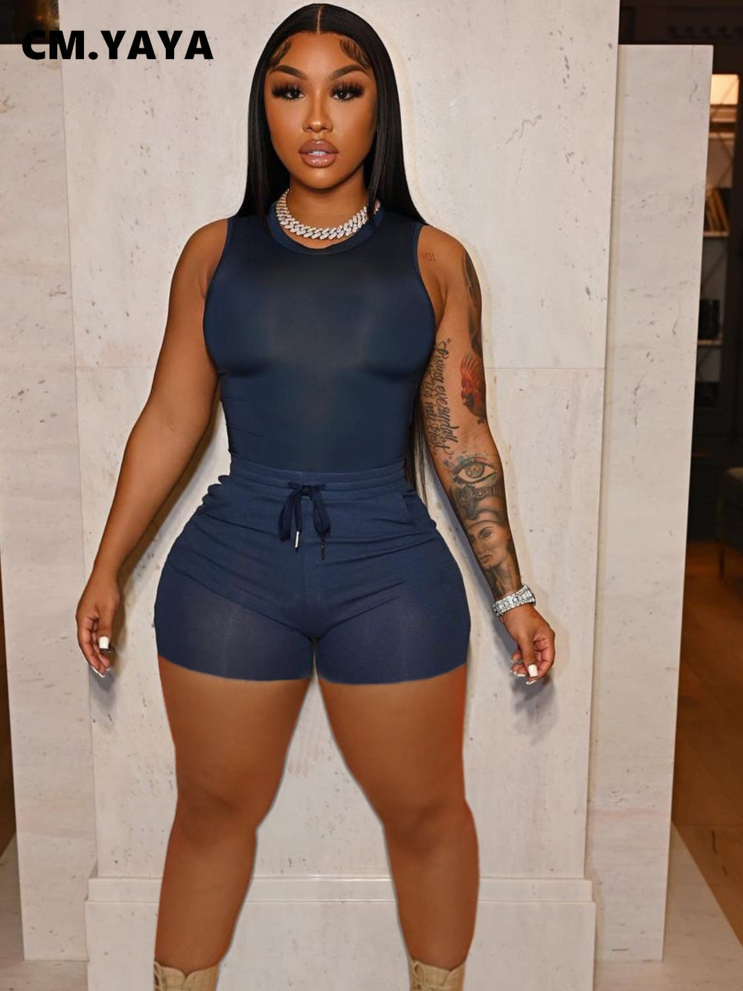 CM.YAYA Active Street Women 2pcs Set Tank Tops and Shorts Set 2022 Summer Sport Casual Sweatsuit Tracksuit Two Piece Set Outfits
