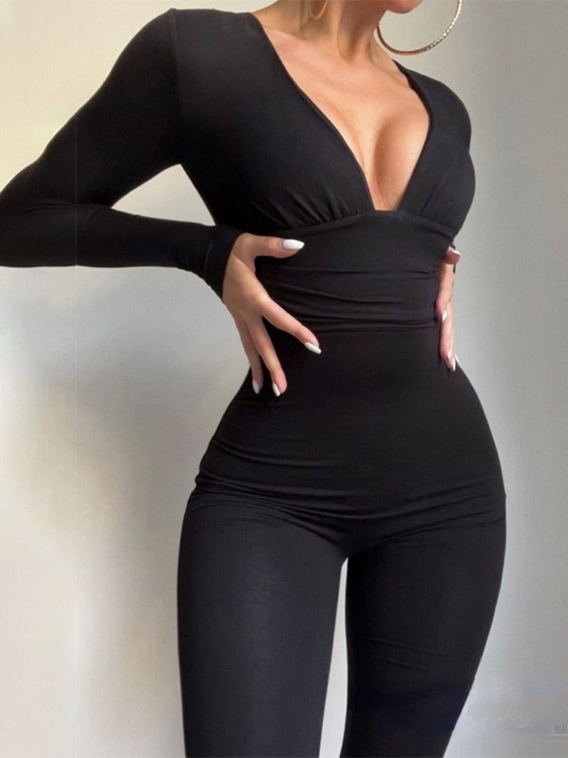 CM.YAYA Women Gauze Hollow Out Deep V-neck High Waist Tunic Bodycon Jumpsuit Sexy Party One Piece Overall Romper Playsuits 2022