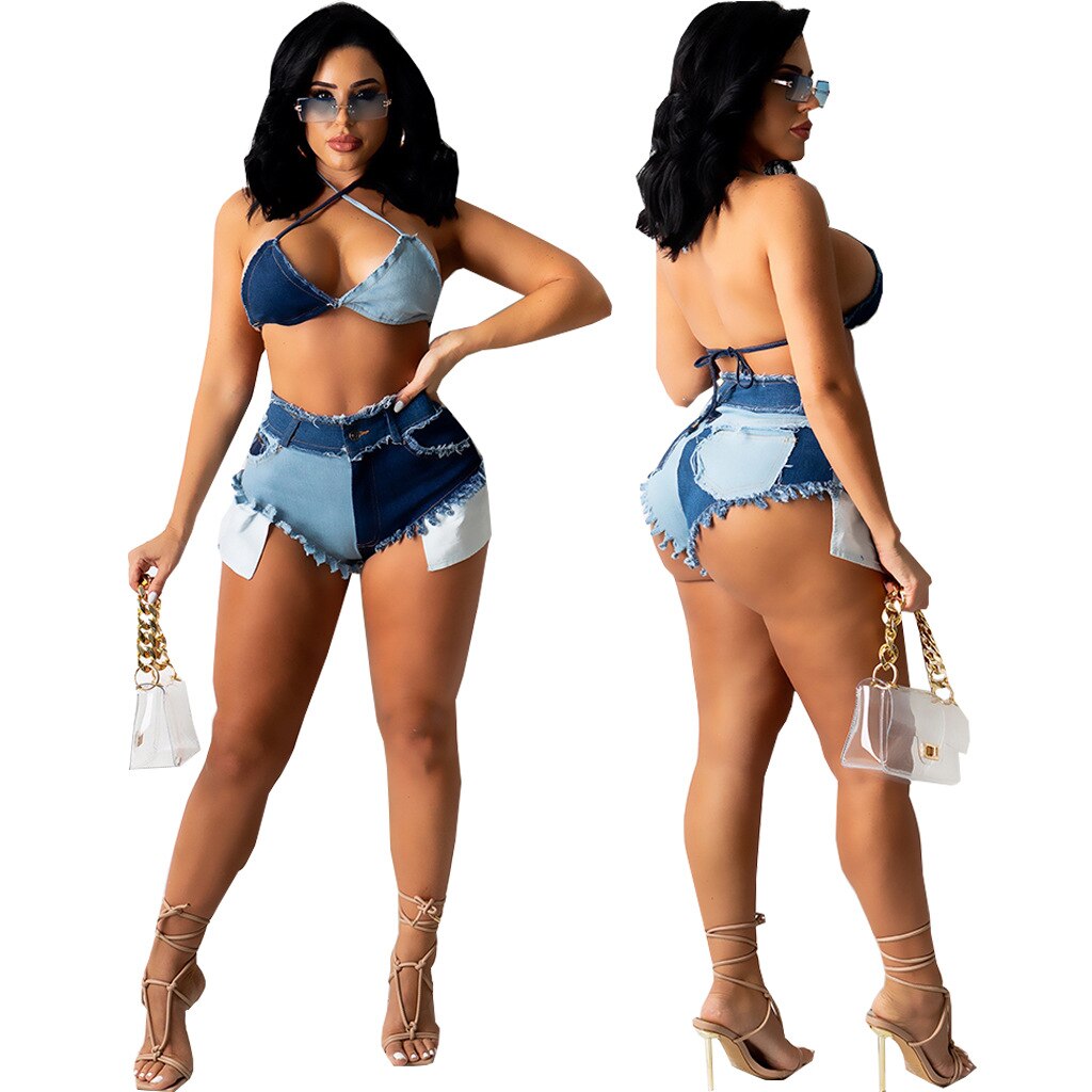 CM.YAYA Women Jeans Patchwork Ripped Pockets Zip Super-short Jeans Sexy Fashion Denim Shorts High Streetwear Summer Trousers