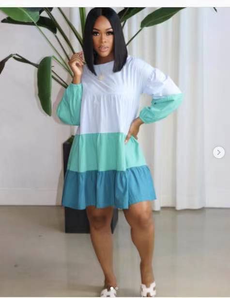 CM.YAYA Women Midi Dress Patchwork Full Sleeve O-neck Loose Knee Length Dresses Fashion Casual Streetwear Summer Vestidos Outfit