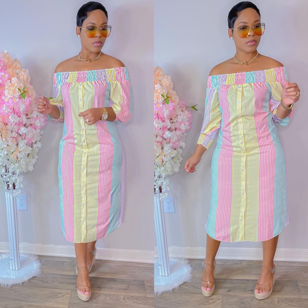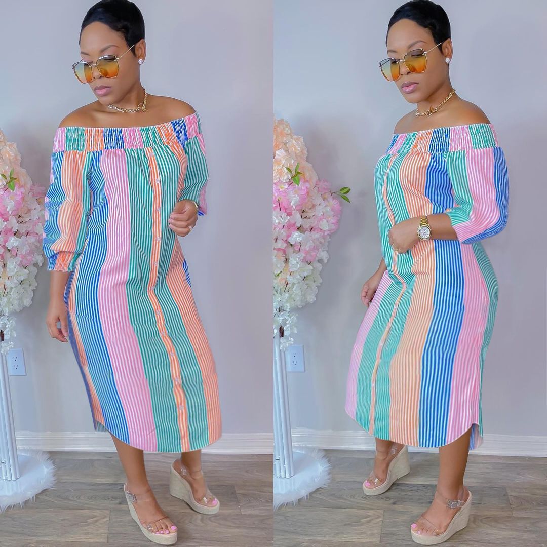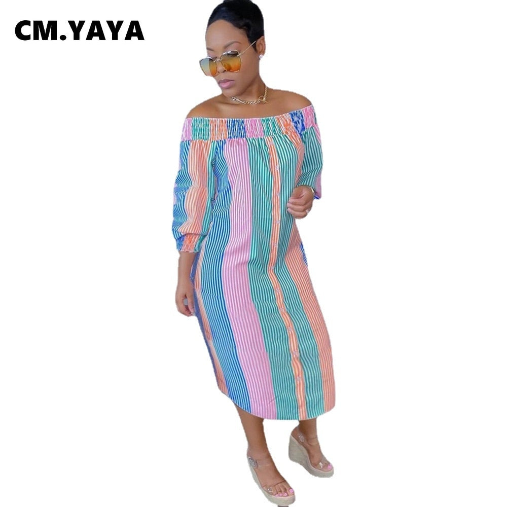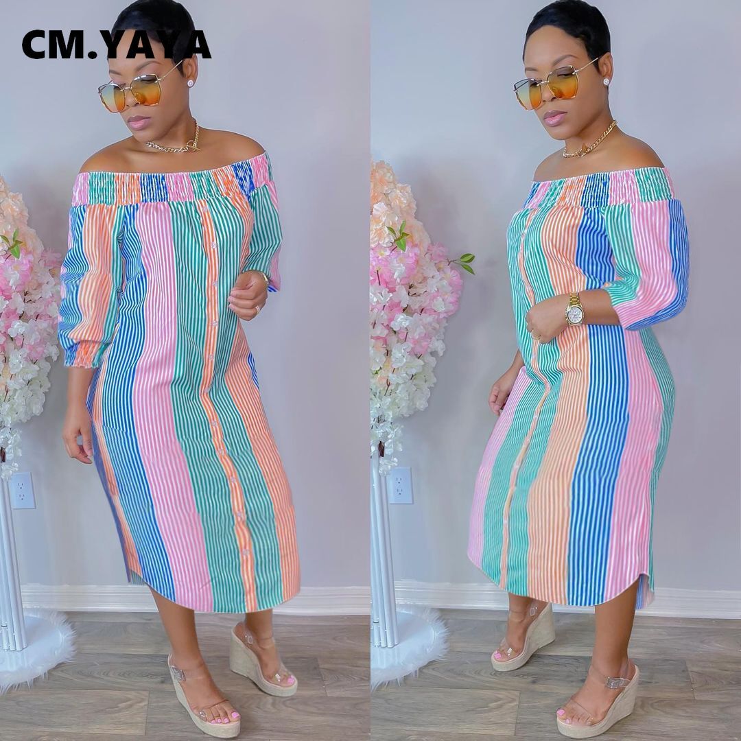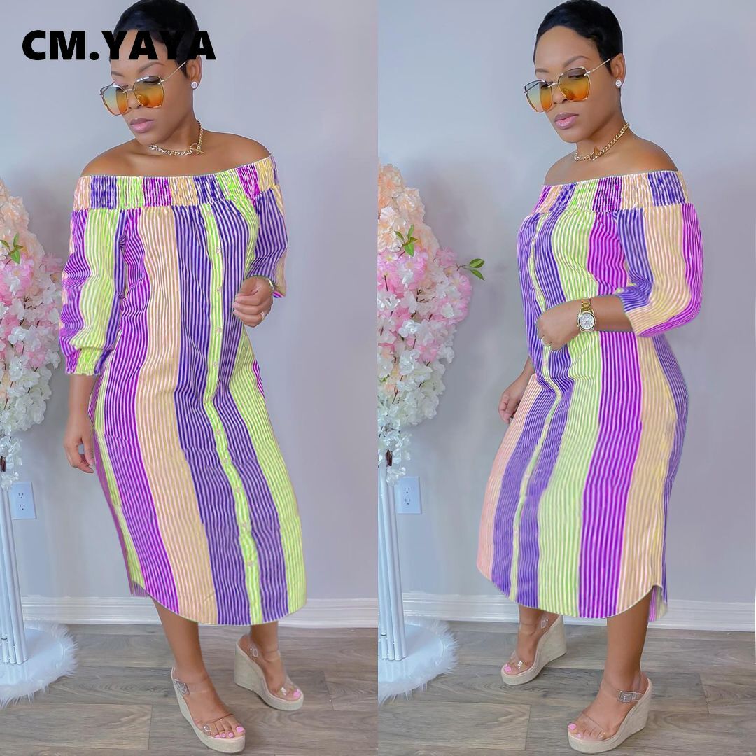 CM.YAYA Women Midi Dress Print Half Sleeve Elastic Off Shoulder Loose Straight Dresses Fashion Vestidos Casual Outfits Autumn