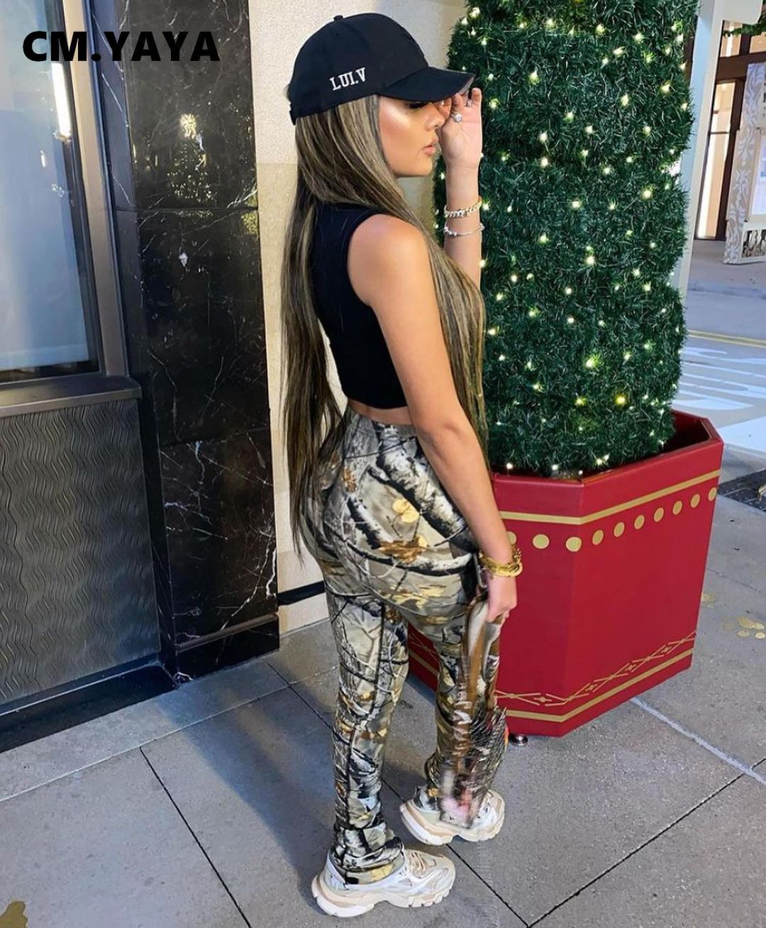 CM.YAYA Women Paisley Print High Waist Elastic Flare Long Skinny Bodycon Pants for streetwear fashion Bellbottom Trousers