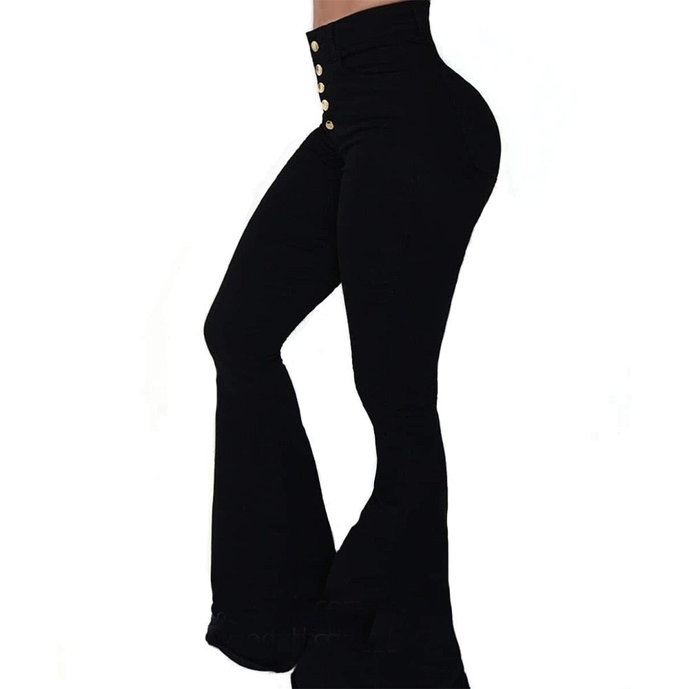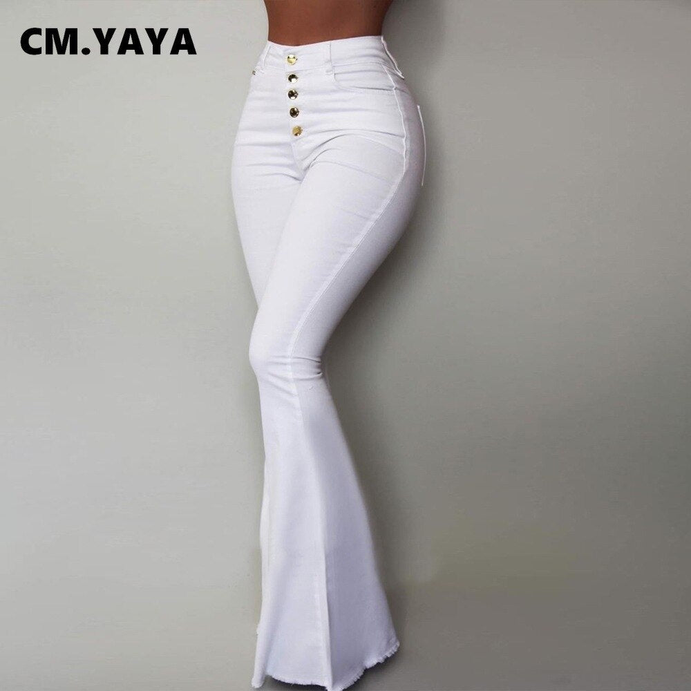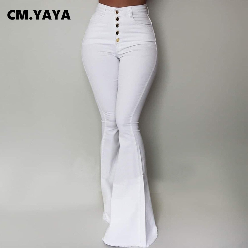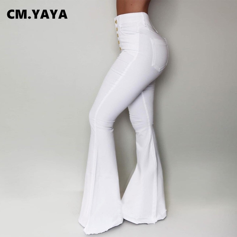 CM.YAYA Women Pants Solid High Waist Button Fly Skinny Flare Pants with Pockets Fashion High Streetwear Vintage Trousers Autumn