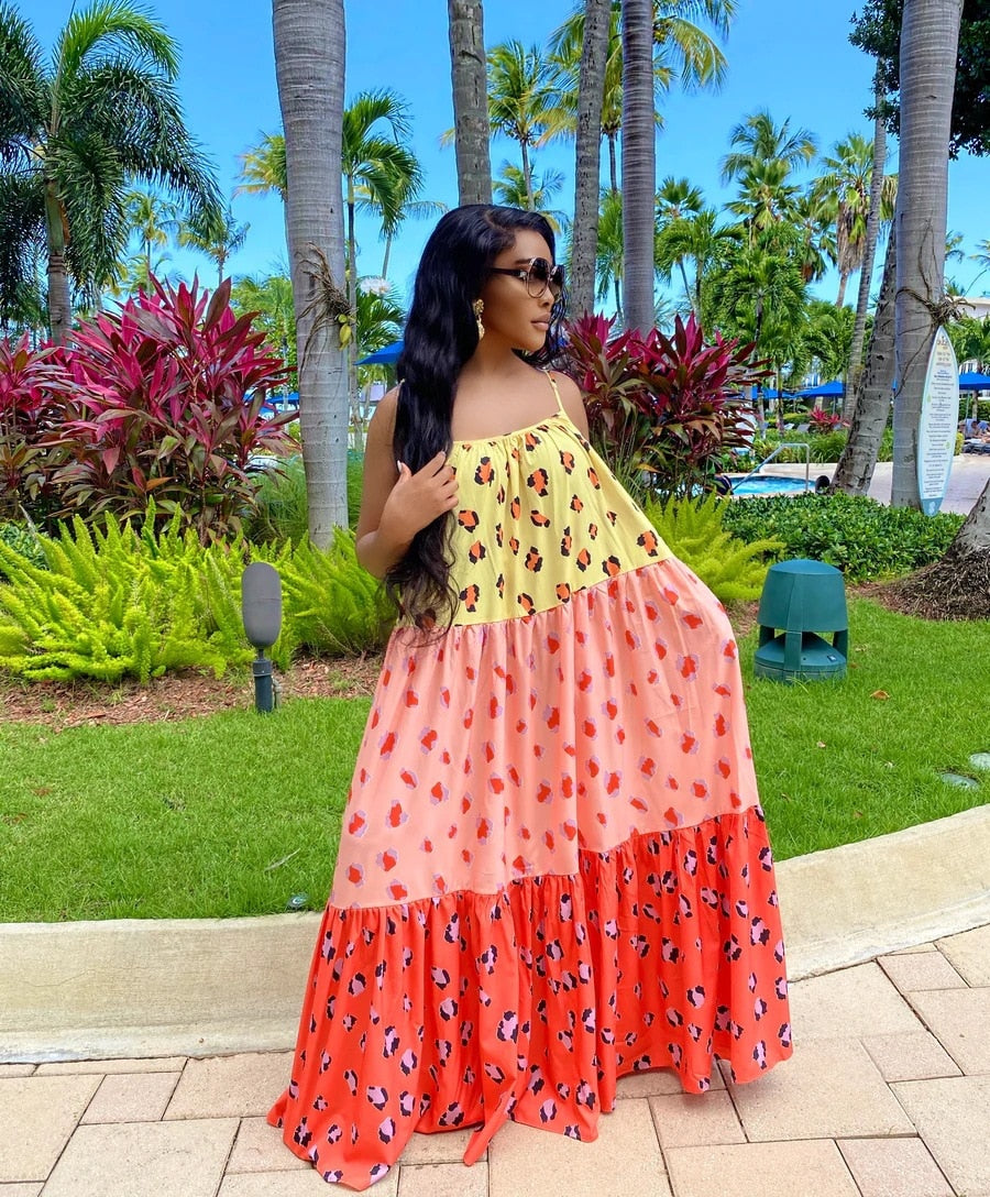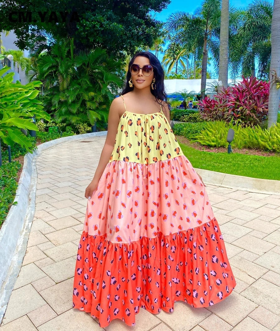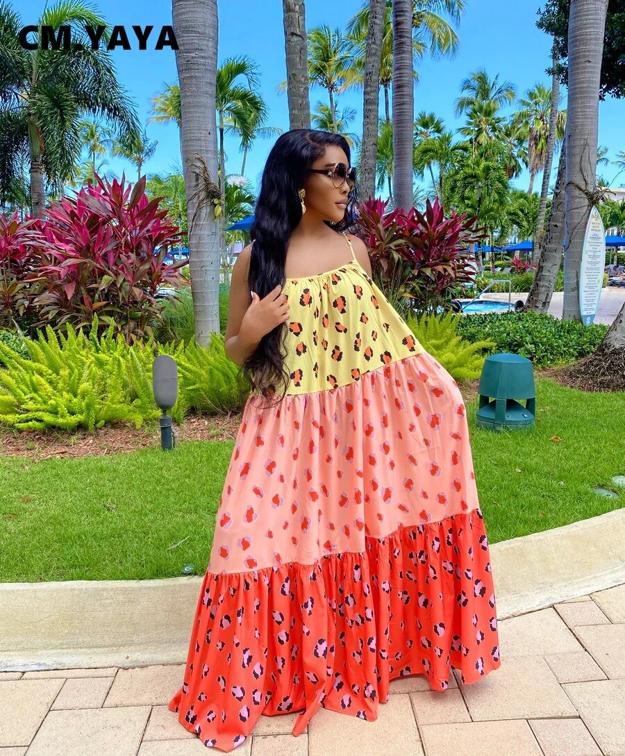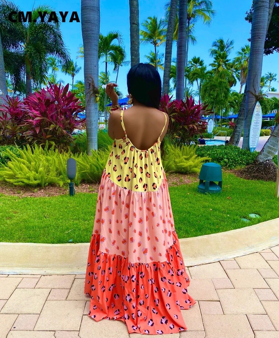 CMYAYA Women Summer Long Maxi Dress Sexy Sleeveless Strap Loose Beach Party Night Club Bandage Female Dresses Vestido