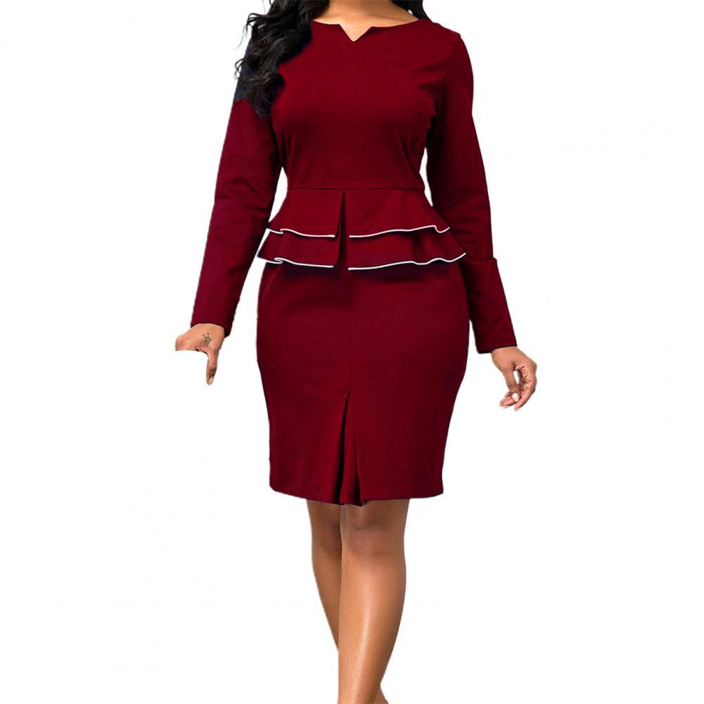 Formal Women Dress Sets Bodycon Skirt Two Piece Suits Ruffle Slim Solid Color Pencil Skirts Business Outfits Suit Office