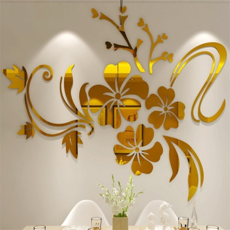 Fresh Flowers Reflector Ball Room Bathroom Decor Acrylic Wall Mirror Irregular Mirror Living Room Decoration Mini Sticker Mirror