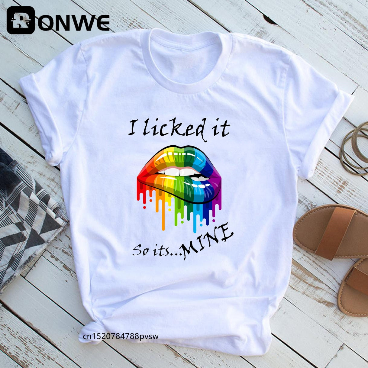 I Licked It So It's Mine Graphic Black T shirt Summer Girl LGBT Harajuku 90s Clothes Female Tops Tee,Drop Ship