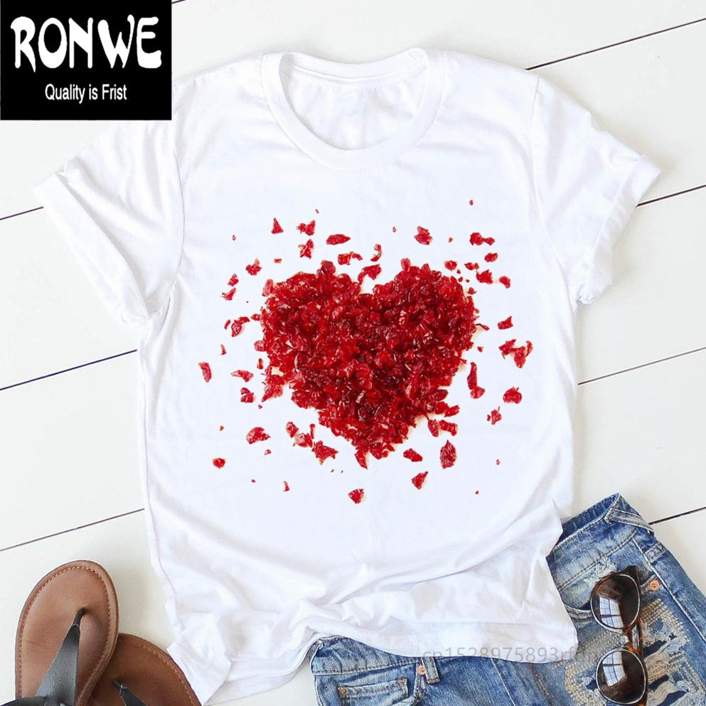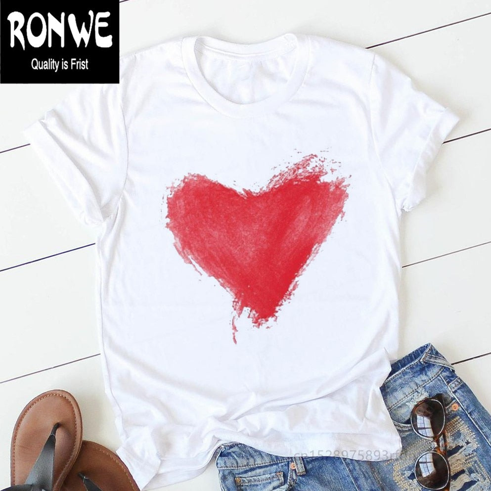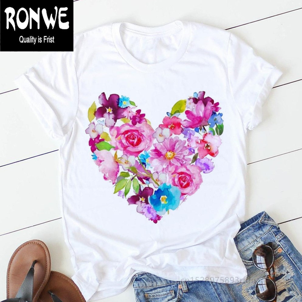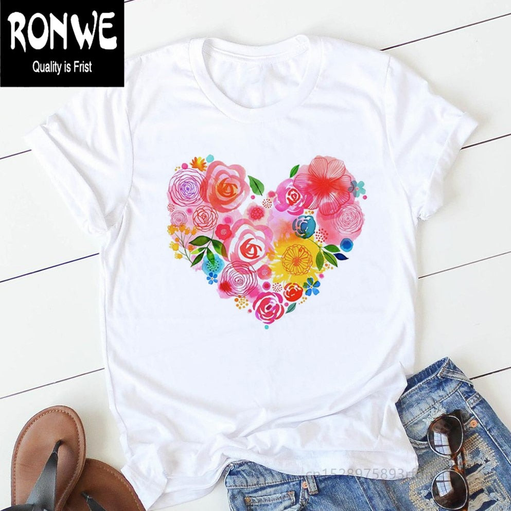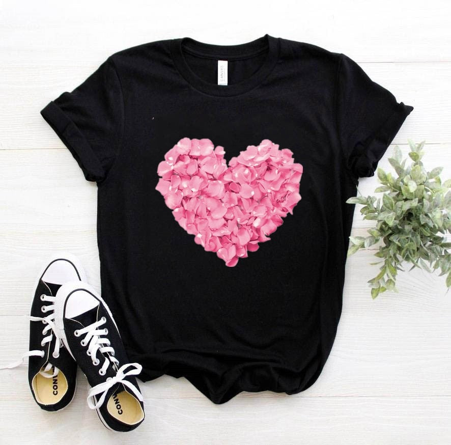 Pink Heart Flower Print Women Tshirt Cotton Casual Funny T Shirt Gift 90s Lady Yong Girl Drop Ship PKT-894