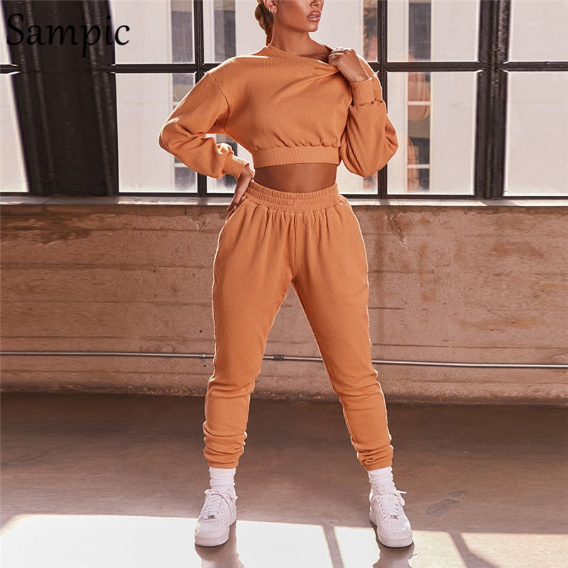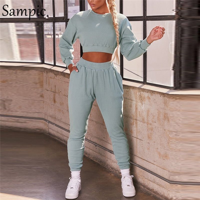 Sampic Casual Women Tracksuit Pants Set Long Sleeve Sweatshirt Tops And Sport Long Pants Suit Two Piece Set 2020 Winter Outfits