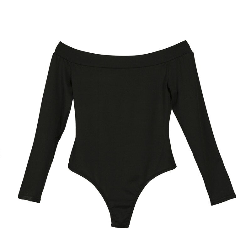 Sexy Bodycon Bodysuit Long Sleeve Square Neck Sheath Open Crotch Basic White Black Overalls Women Skinny Body Top