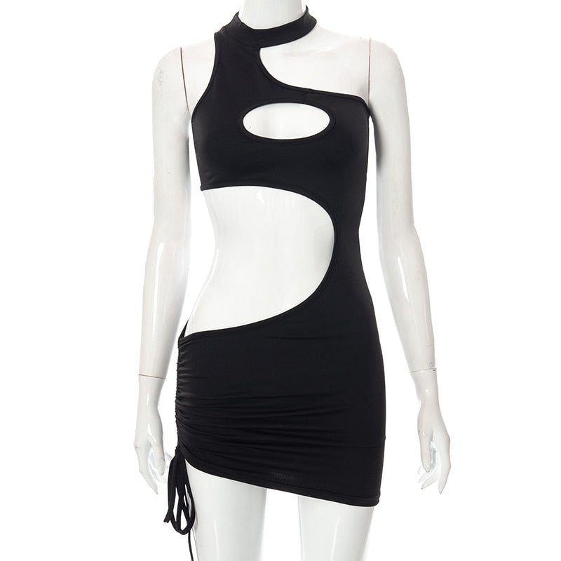 Sexy Cut Out Drawstring Ruched Mini Dress Women Sleeveless Backless Low Rise Dresses 2022 Summer Harajuku Lolita Robe
