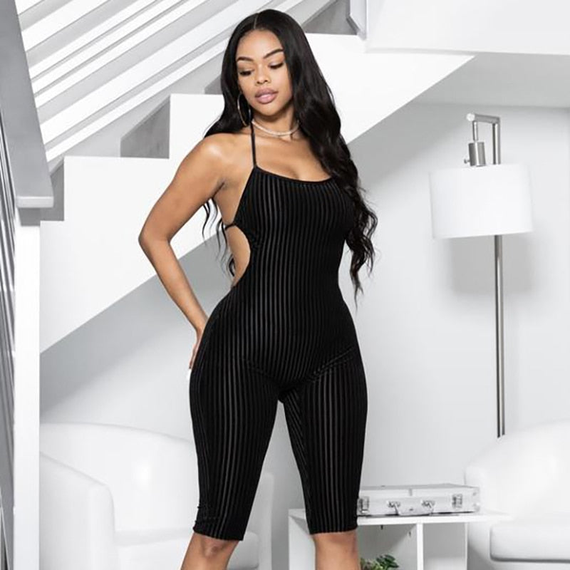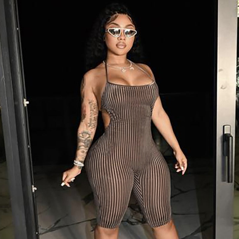 Sexy Halter Lace Up Backless Jumpsuits Women Skinny Shorts One Piece Rompers 2022 Spring Fall Harajuku Lolita Y2K Clothes