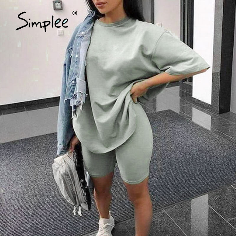 Simplee Casual Solid Outfits Women's Two Piece Suit with Belt Home Loose Sports Tracksuits Fashion Bicycle Summer Hot Suit 2020
