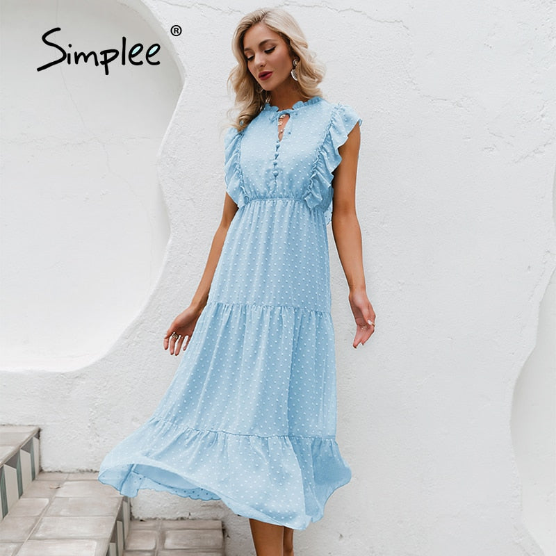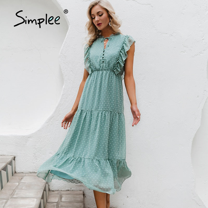 Simplee Summer Loose Casual Ruffled Women's Dress 2021 Holiday Beach Green Buttoned Long Dress Elegant Lady Sleeveless Vestidos