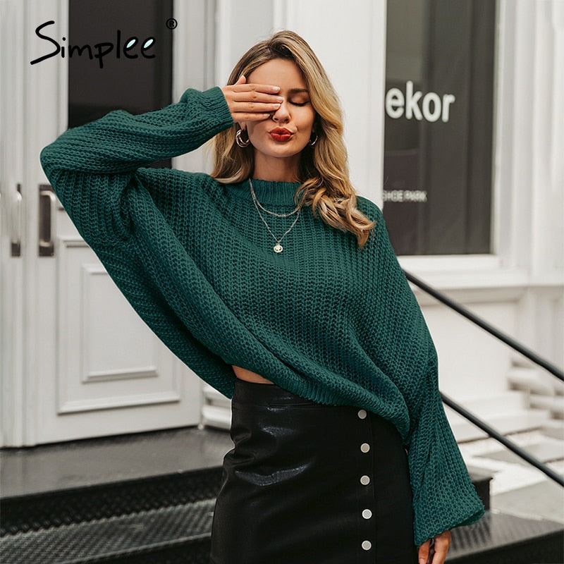 Simplee Winter lantern sleeve knitted sweater pullover Women loose O-neck solid sweater Female autumn casual sweater jumper new