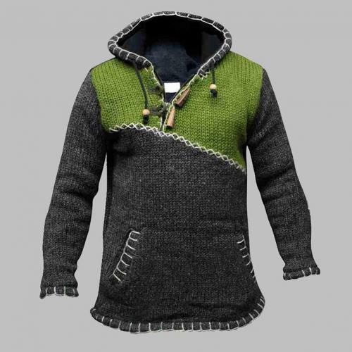 Streetwear Men Long Sleeve Stitching Hoodie Autumn Winter Color Block Hooded Jumpers Knit Sweatshirts Knit Hoodies