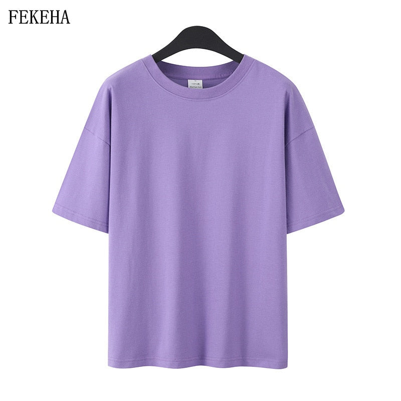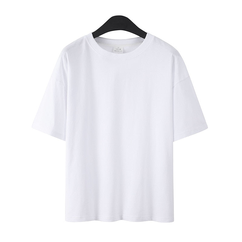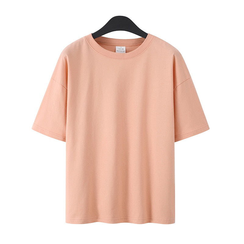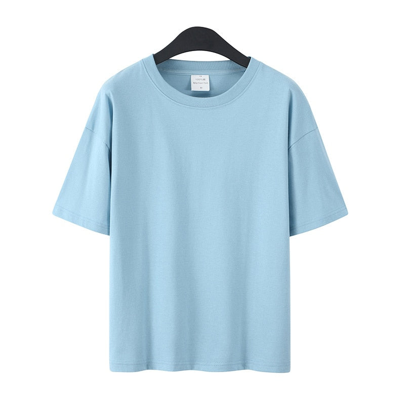 Summer T-Shirts Women Short Sleeve Lovers T shirt 100% Cotton Loose Lady Tops Tees Casual Solid Color White