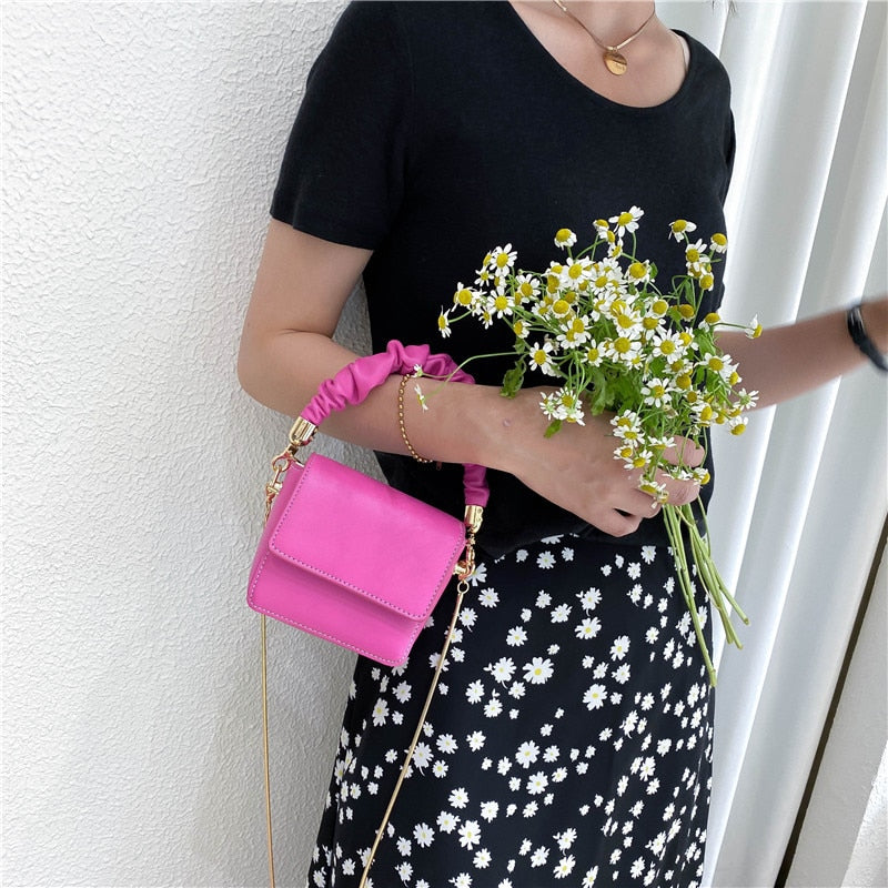Super Mini Lipstick Bags with Short Handles Folds PU Leather Shoulder Bags for Women 2022 Kawaii Totes Handbags Crossbody Bags