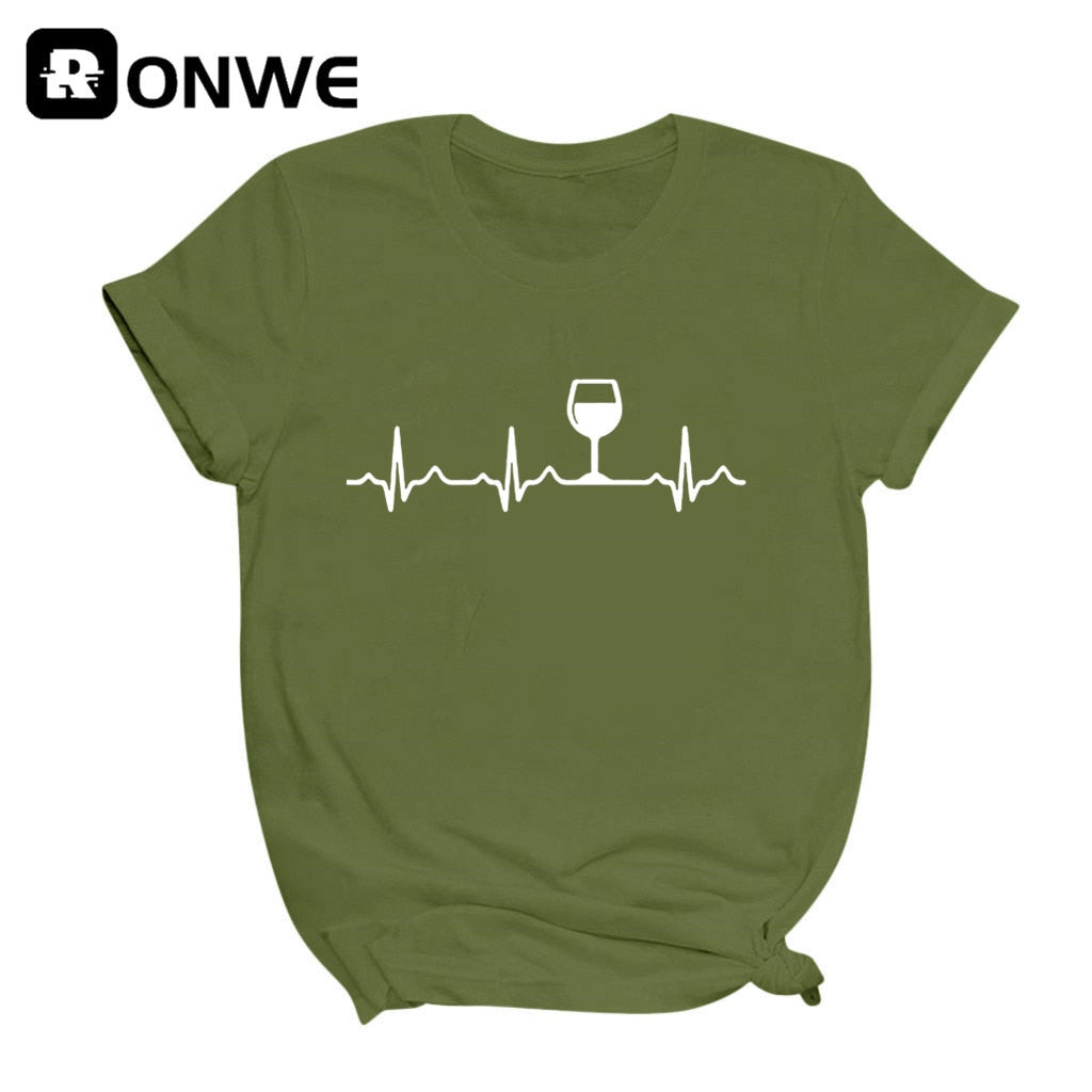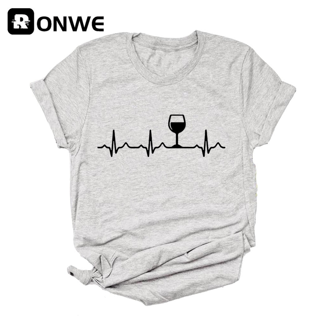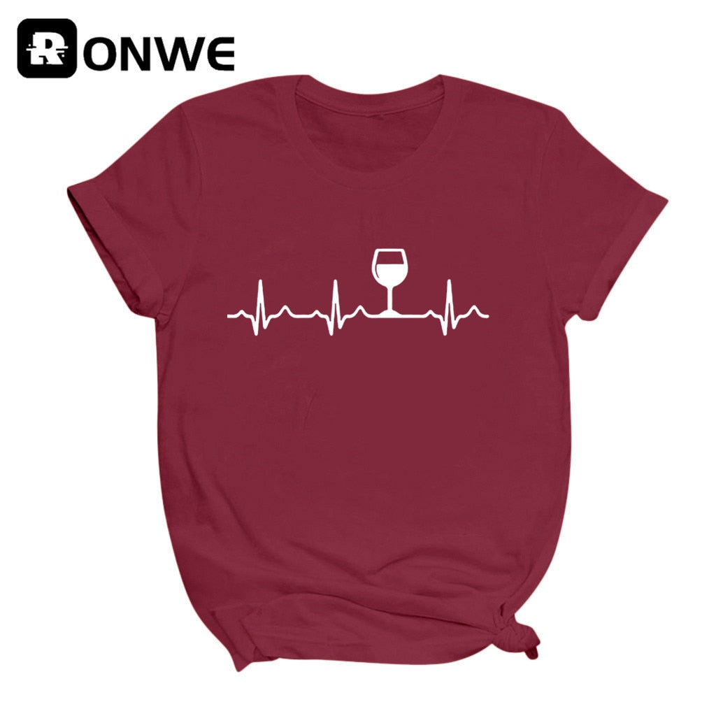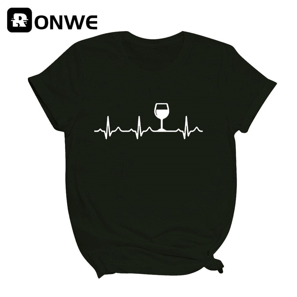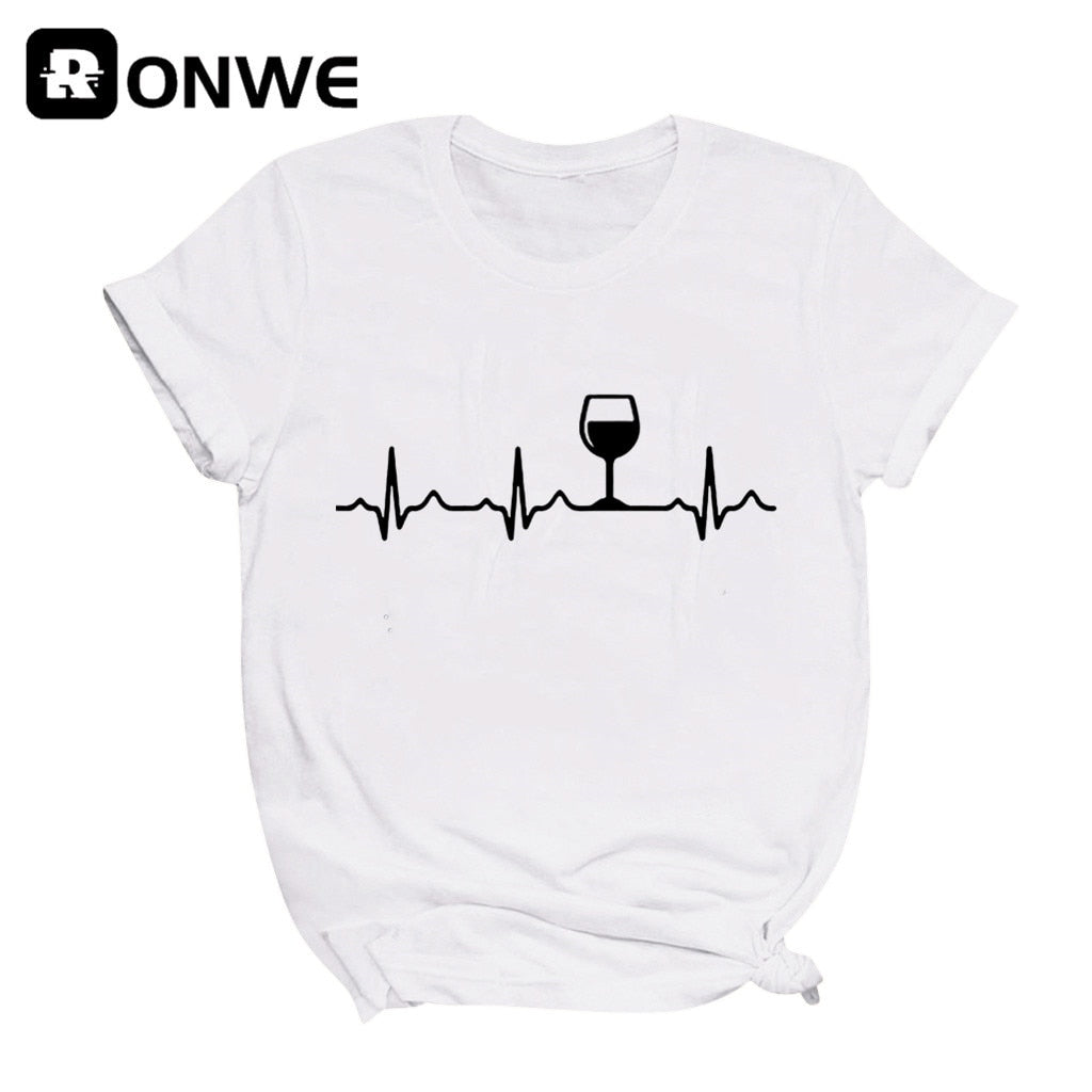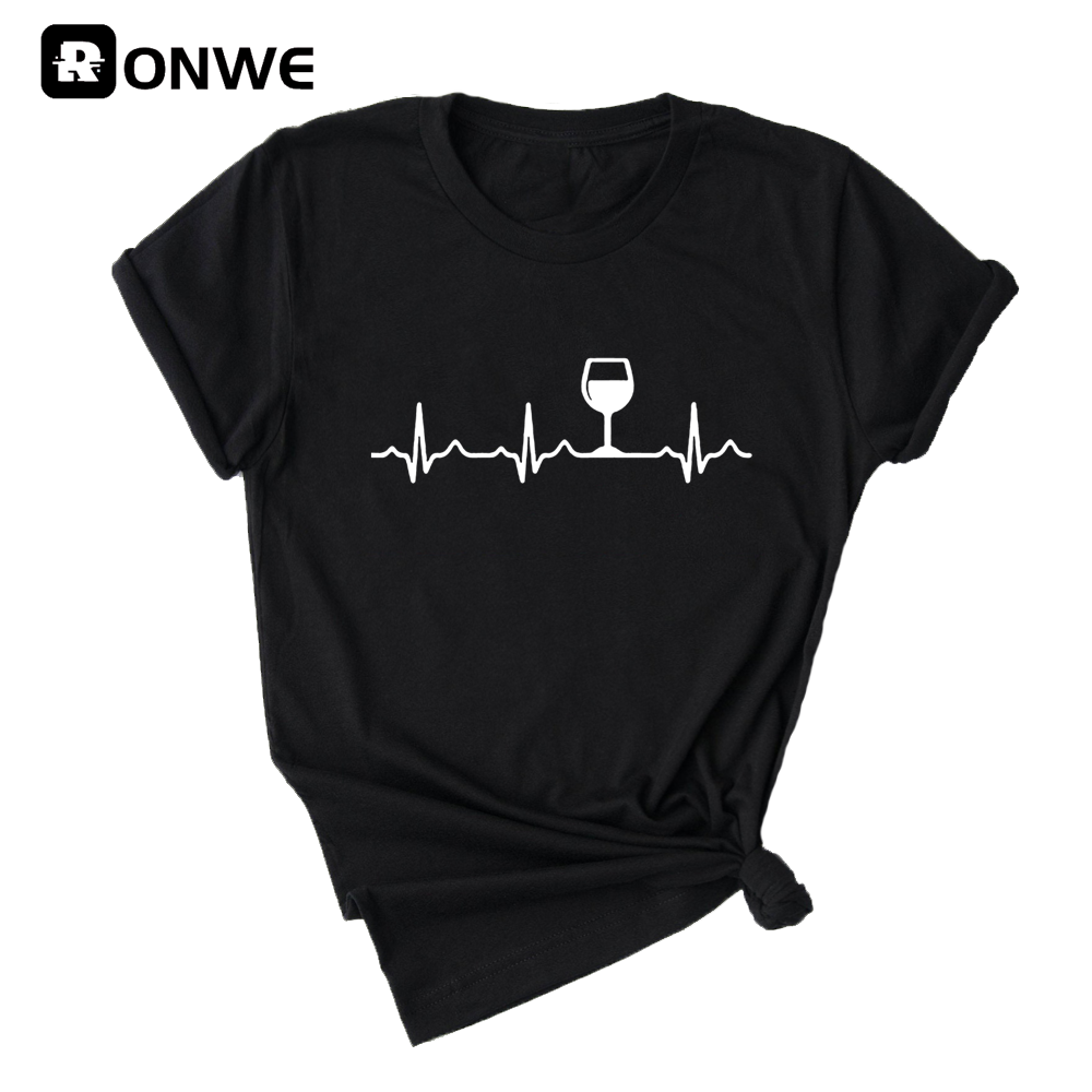Wine Heartbeat Printed Short Sleeve Black Women T-shirt Girl Vintage Tops Tee Female Harajuku Clothing Streetwear,Drop Ship