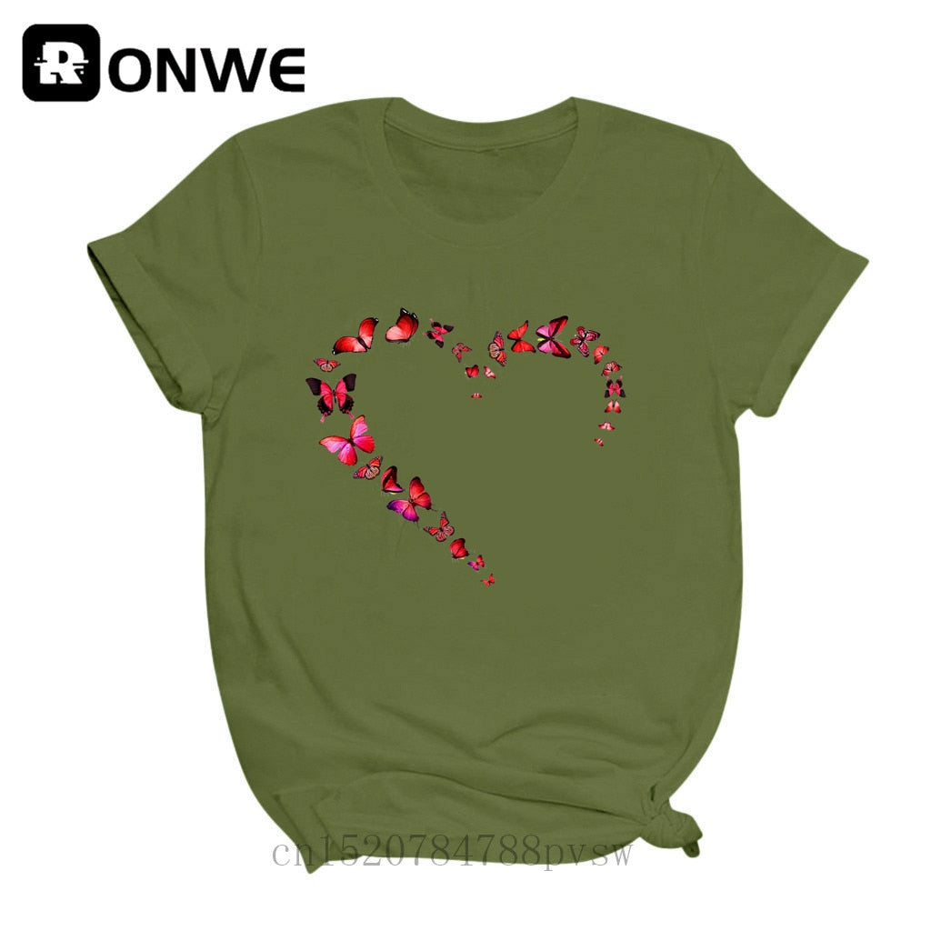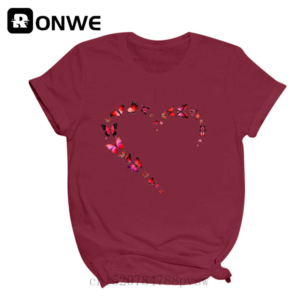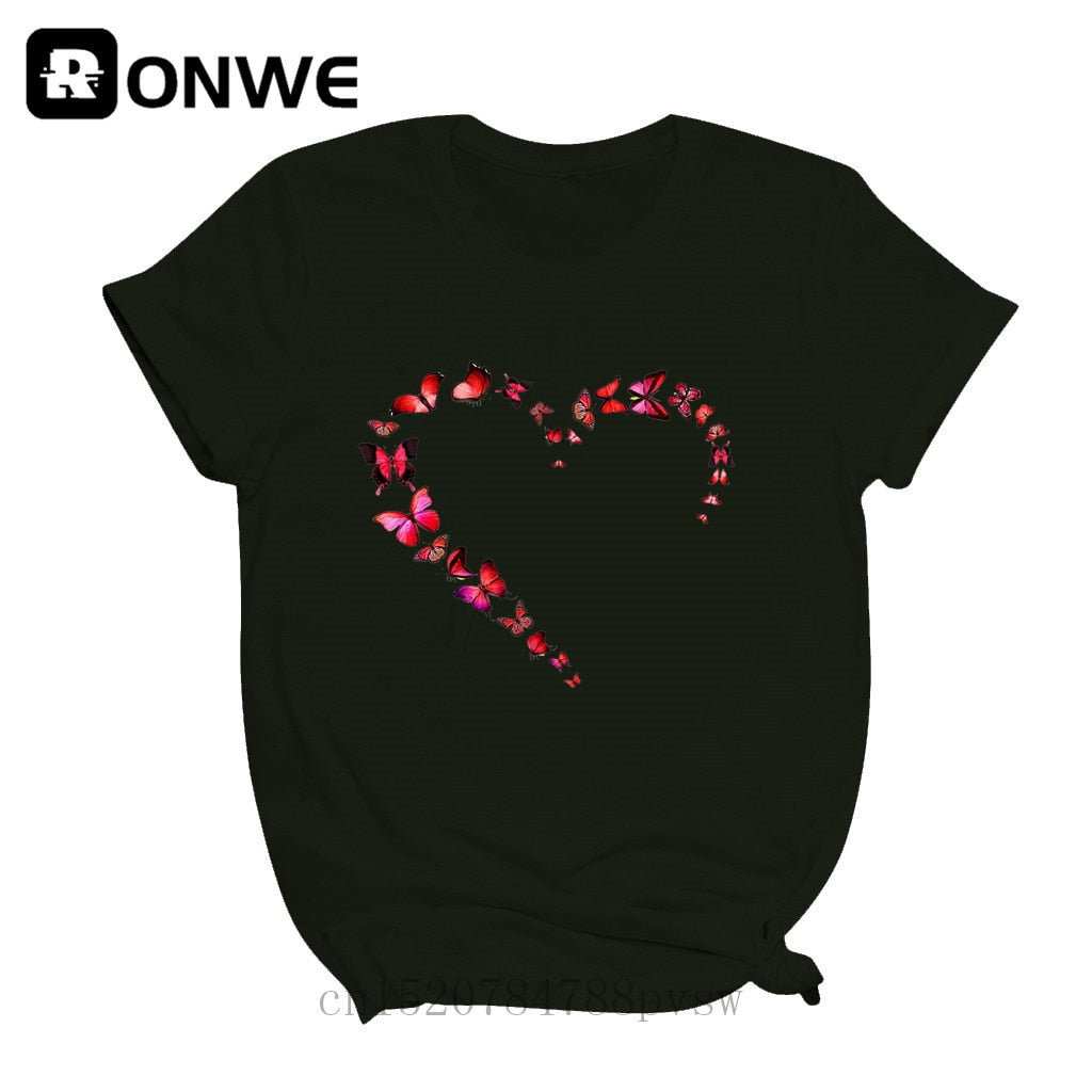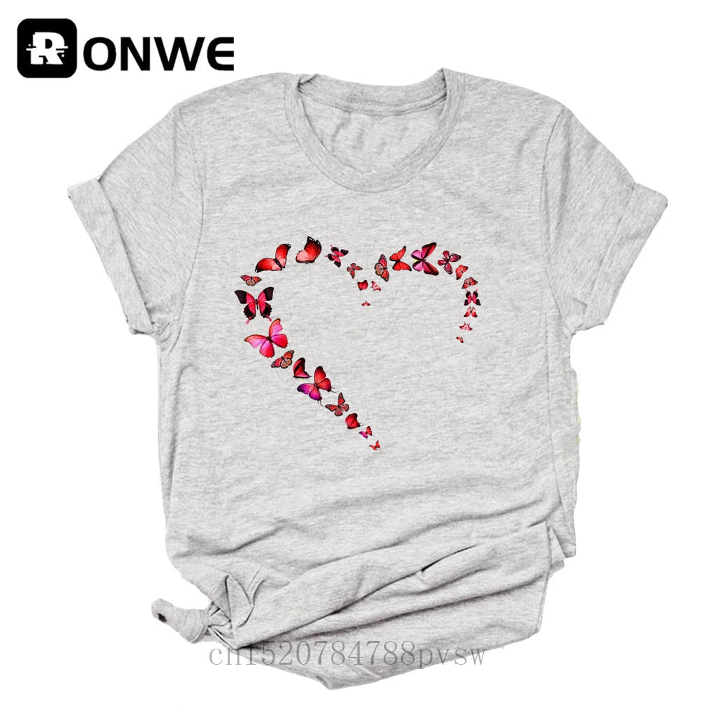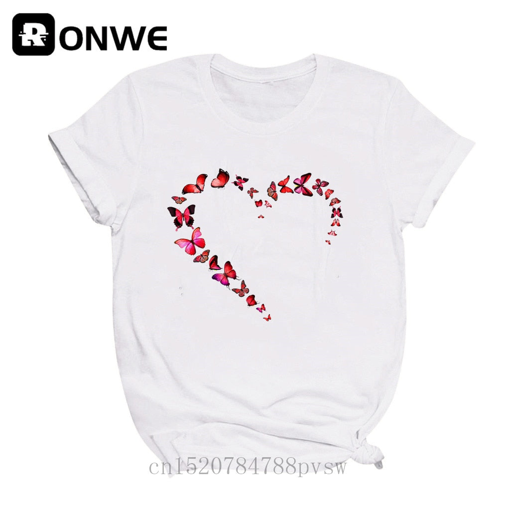 Women Butterfly Love Heart Fashion 90s Black T-shirt Girl Harajuku 90S White Clothes Female Graphic Top Tee,Drop Ship