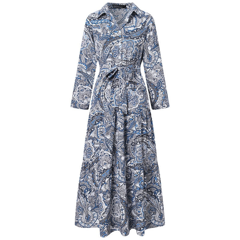 Women Elegant Lapel Maxi Long Shirt Dress Spring Casual Full Sleeve Party Sundress ZANZEA Vintage Lace Up Vestidos Oversize Robe