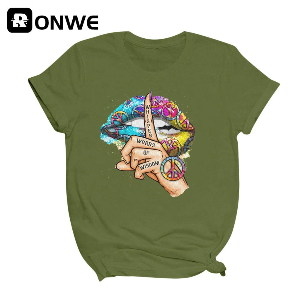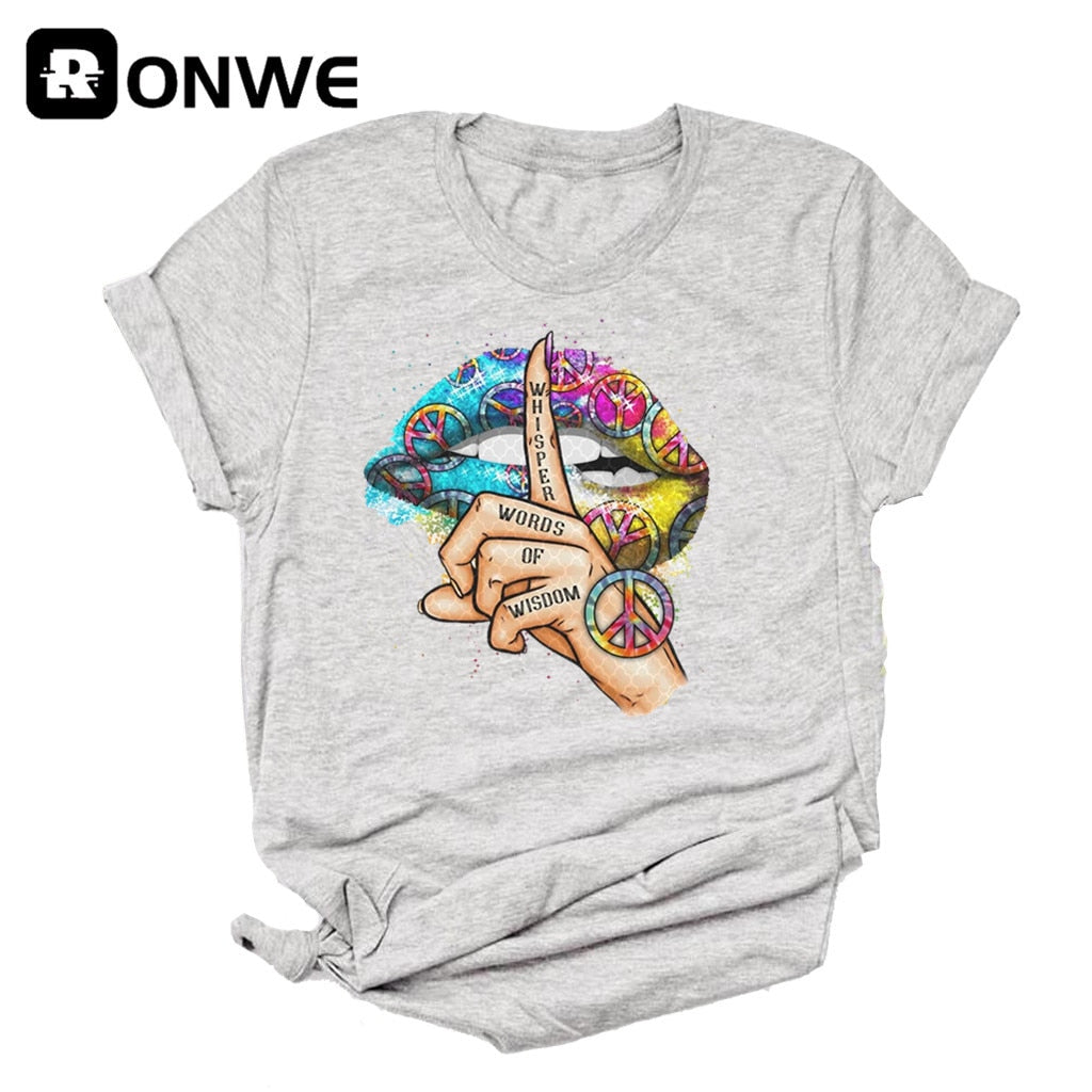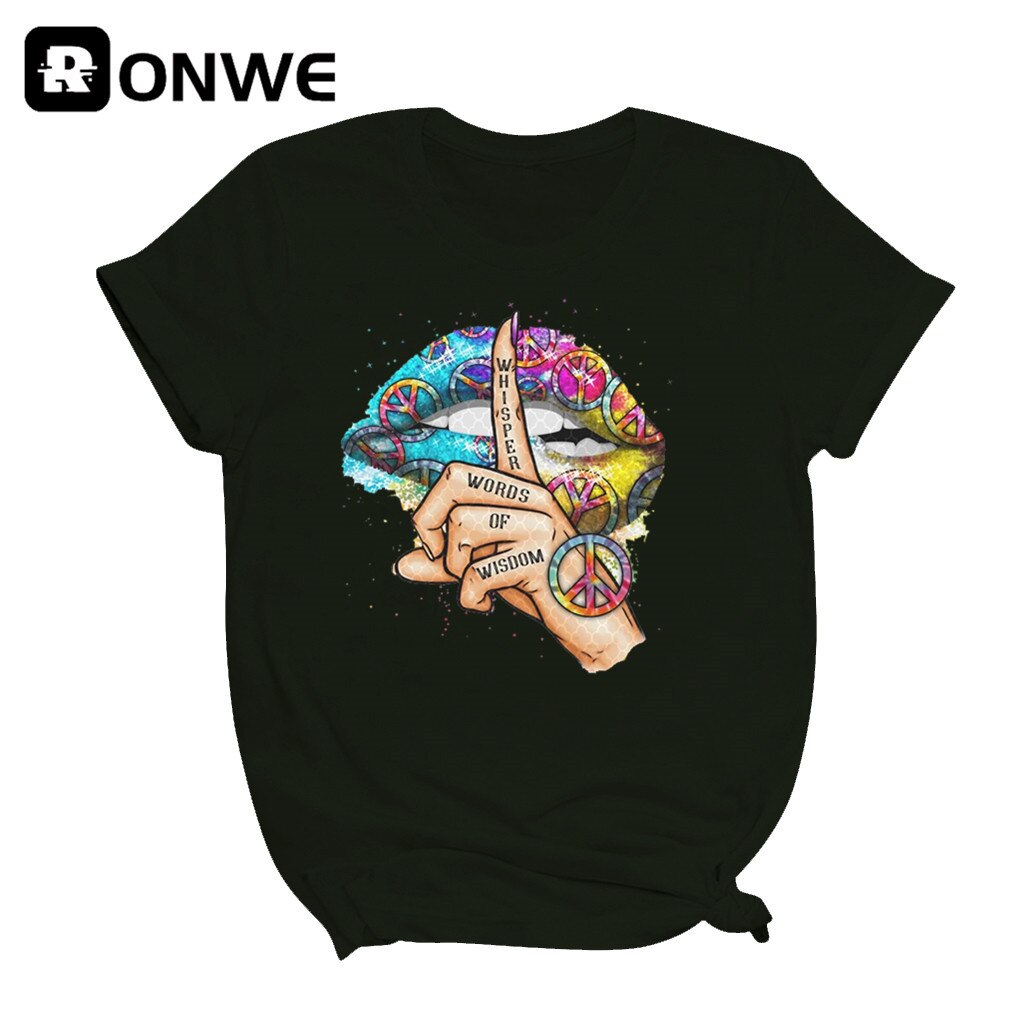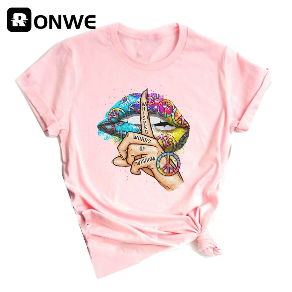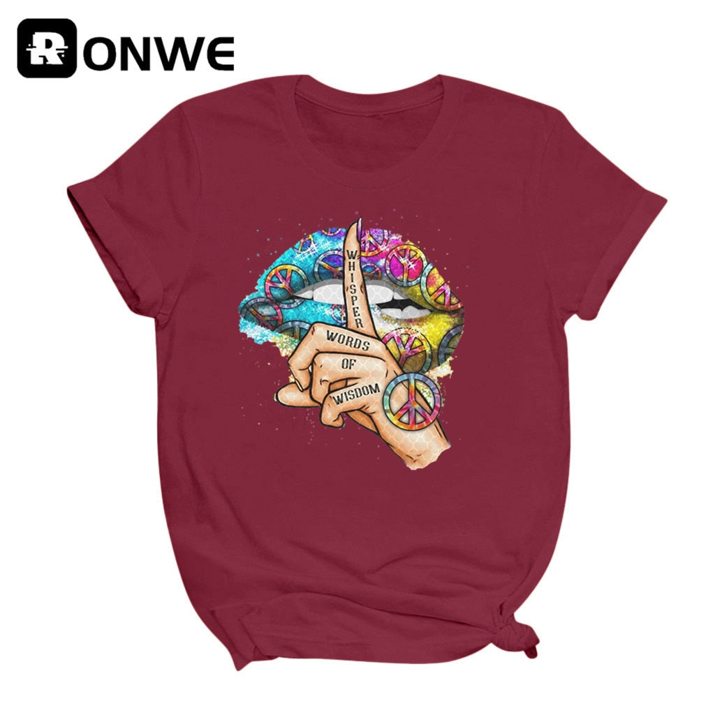 Women Lips Watercolor Graphic T Shirt Girl Base O-neck Sexy Black Tees Kiss Lip Funny Whisper Words Girls Tshirt,Drop Ship