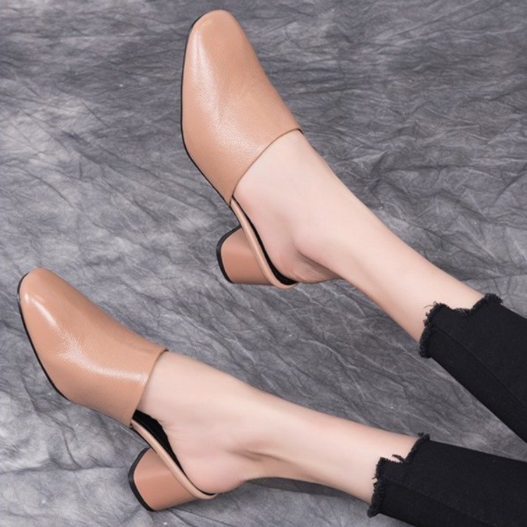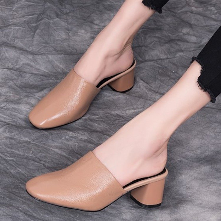 Wongn Wongn 2023 New Baotou Leather Thick With Cool Drag Fashion Hot Style High Heel Slippers Women's Shoes