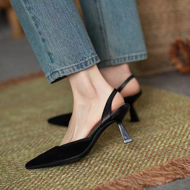 Wongn Wongn 2023 New Fashion Plaid Pointed Head Hollow Cover High Heel Sandals Thin Heel Women's Shoes