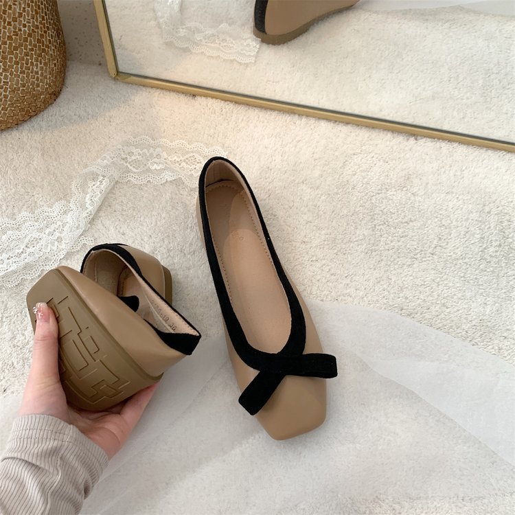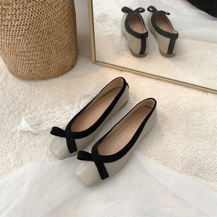 Wongn Wongn 2023 New Fashion Small Fragrant Wind Bow Square Mouth Flat Single Shoe Women's Shoes