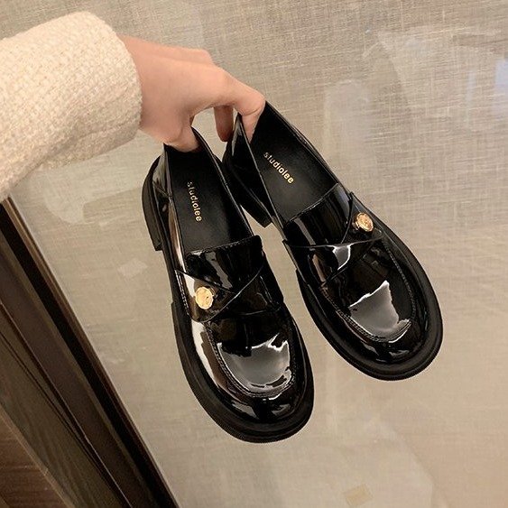 Wongn Wongn 2023 New Fashion Small Fragrant Wind Lacquer Leather Round Head Low Heel Single Shoes Women's Type Small Leather Shoes
