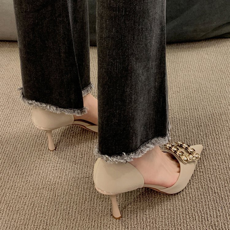 Wongn Wongn 2023 New Korean Version Of Fashion Square Button Metal Buckle Hollow High Heels Single Heel Women's Shoes