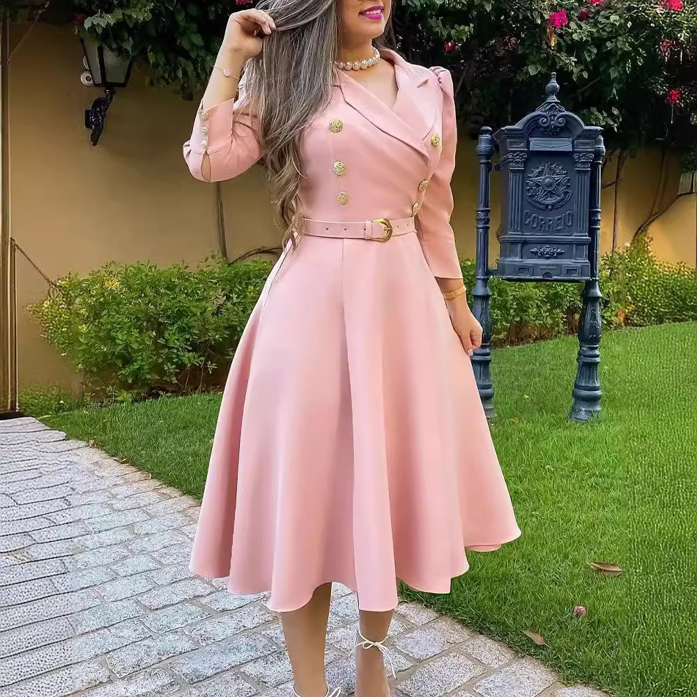 Wongn Wongn 2023 New Women's Jacket Lapel Pleated Belt Temperament Commuter Dress