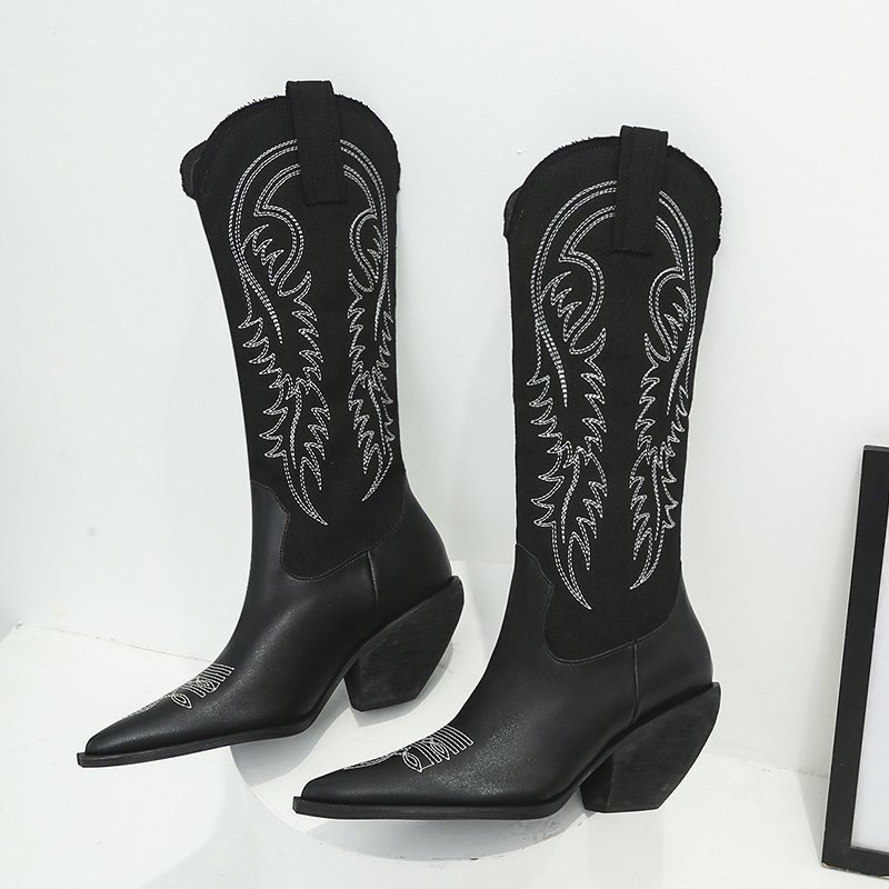 Wongn Wongn 2023 Plus Size Autumn / Winter Leather Boots Pointed Embroidered High Boots And Chelsea Boots
