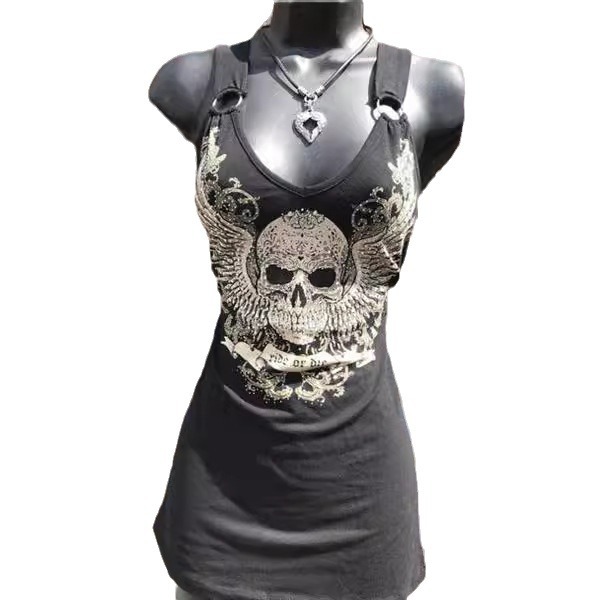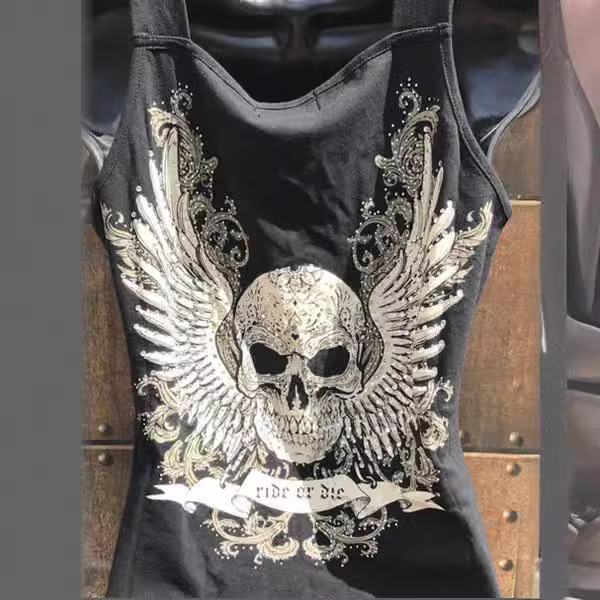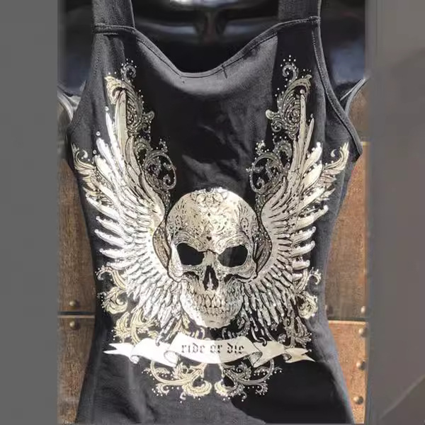 Wongn Wongn 2024 Alion Women's Skull Print Sleeveless Vest T-Shirt