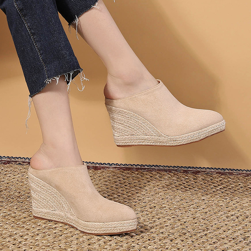Wongn Wongn And Autumn New Pointed Slope With Thick Bottom High Heel Head Drag Women's Single Shoes After Empty Straw Hemp Rope Bottom