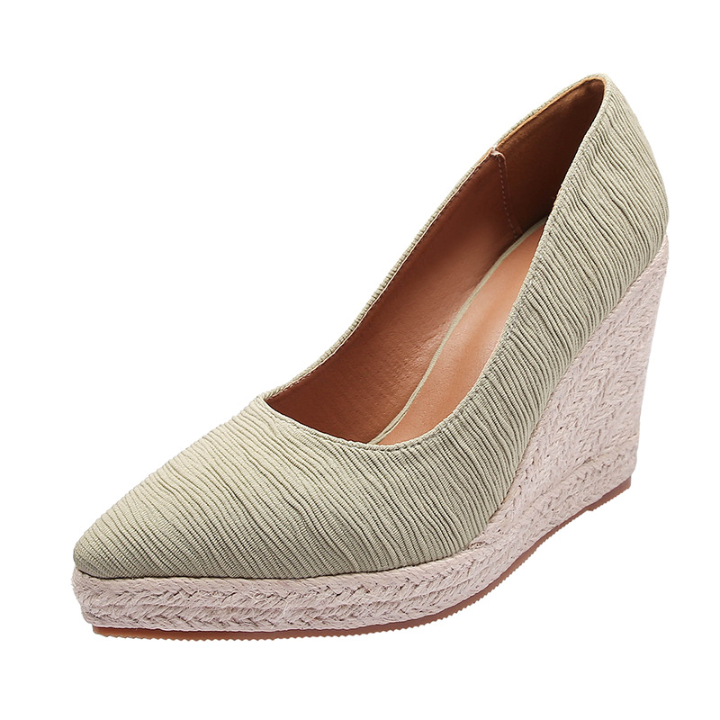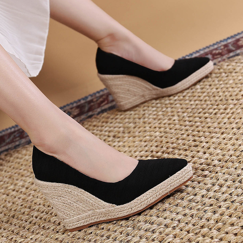 Wongn Wongn And Autumn New Slope Heel Thick Bottom Shallow Mouth Pointed Single Shoes Women Grass Hemp Rope Bottom Large Size Shoes