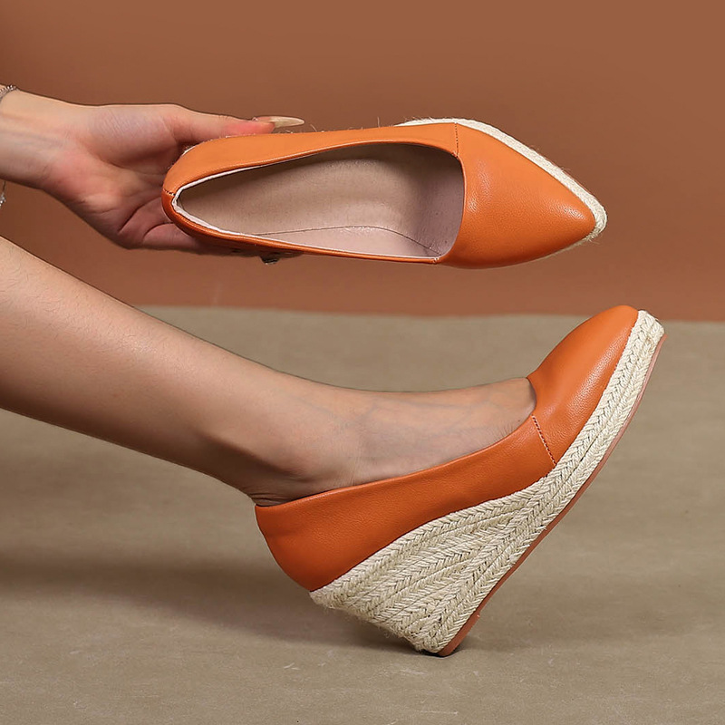 Wongn Wongn And Autumn Slope With Thick Bottom High Heel Pointed Shallow Single Shoes Women Grass Hemp Rope Bottom